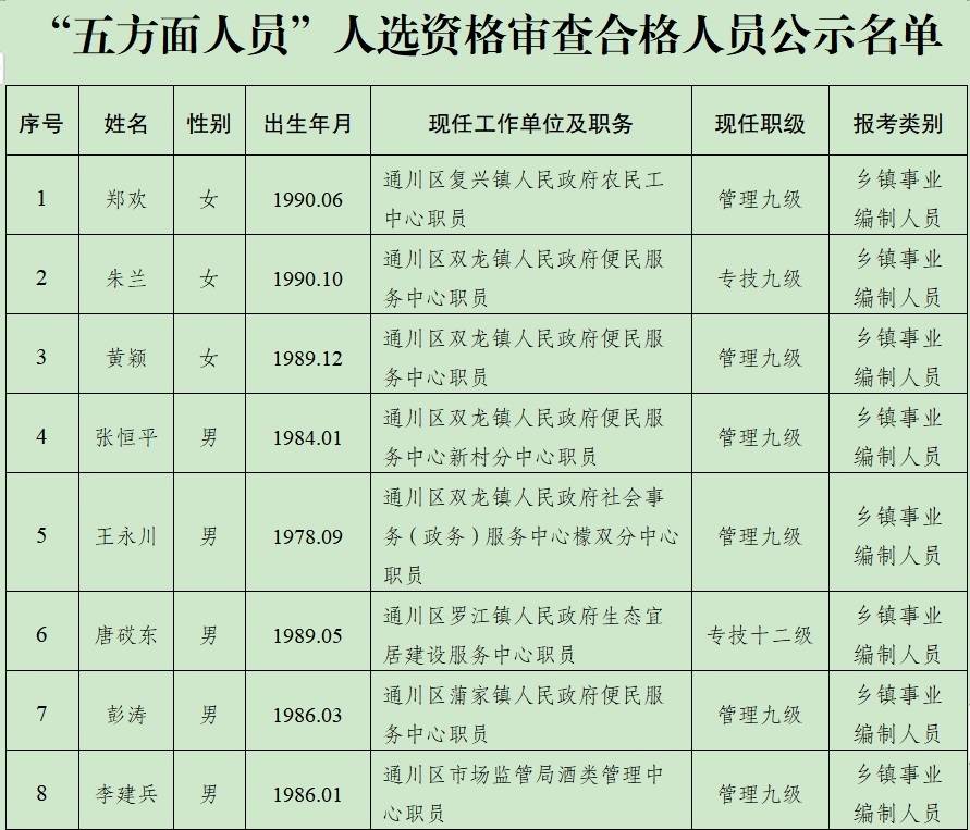 关于2021年达州市通川区“五方面人员”