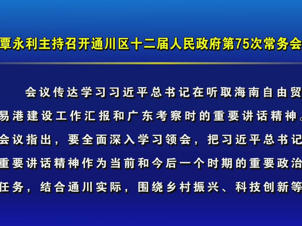 覃永利主持召开通川区十二届人民政府第75次常务会