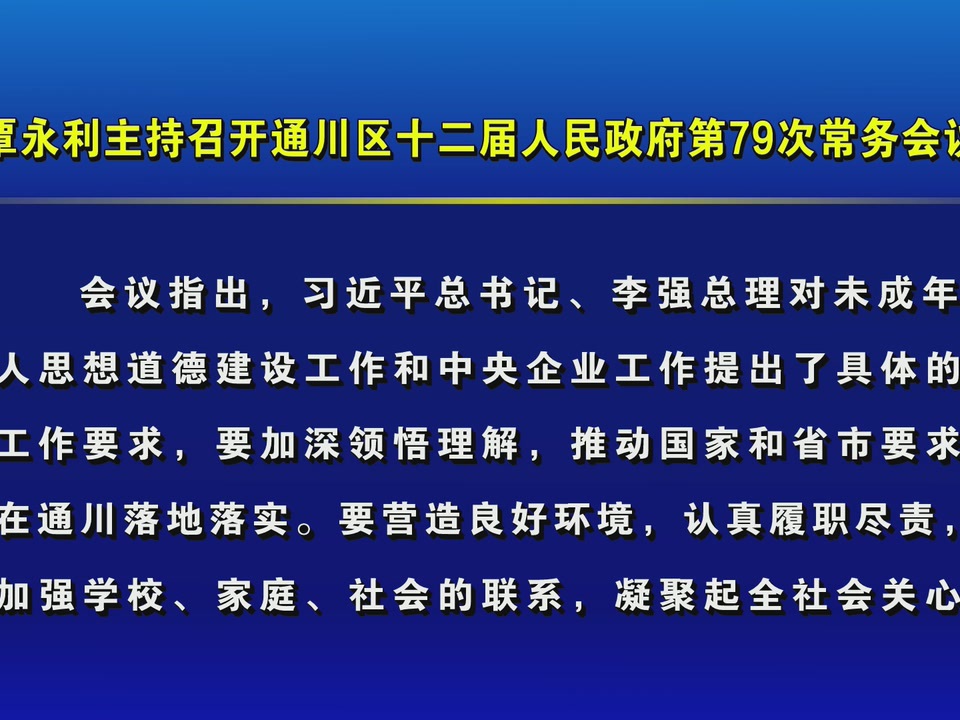 覃永利主持召开通川区十二届人民政府第79次常务会议