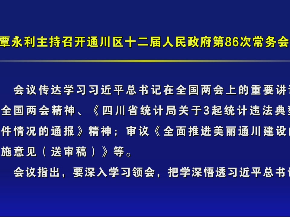 覃永利主持召开通川区十二届人民政府第86次常务会