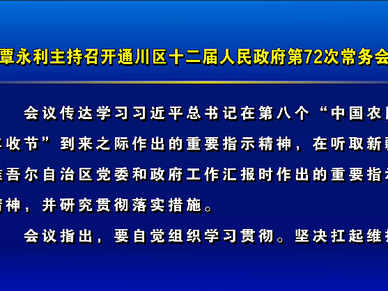 覃永利主持召开通川区十二届人民政府第72次常务会