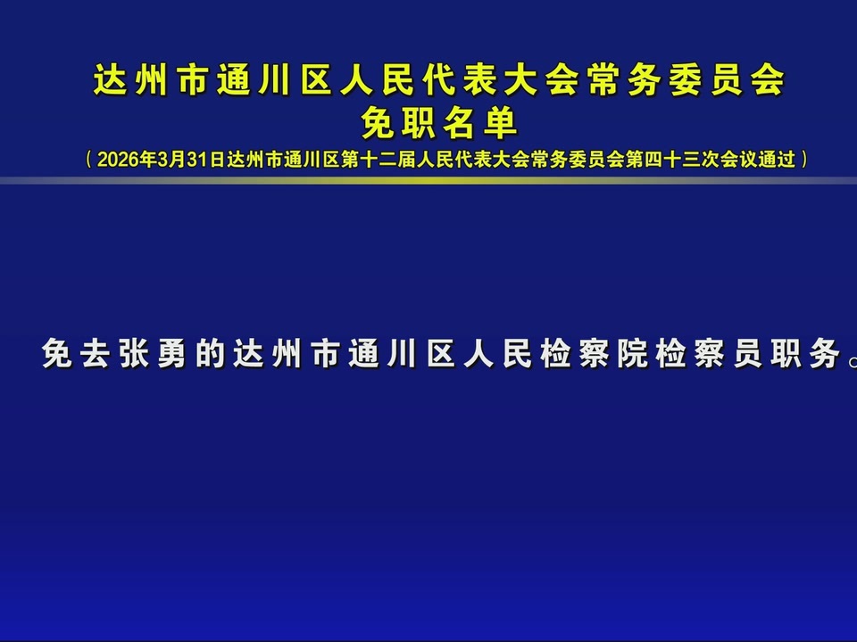 达州市通川区人民代表大会常务委员会免职名单