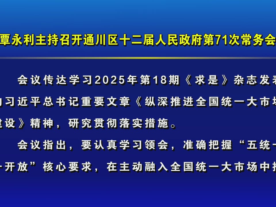 覃永利主持召开通川区十二届人民政府第71次常务会