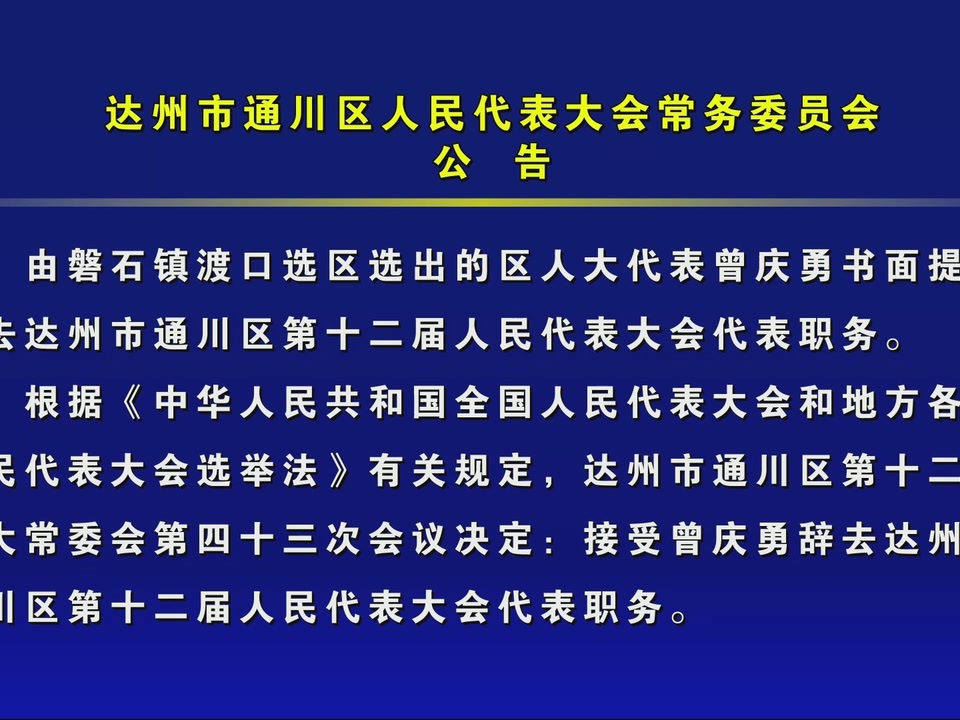 达州市通川区人民代表大会常务委员会公告