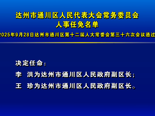 达州市通川区人民代表大会常务委员会人事任免名单9.30