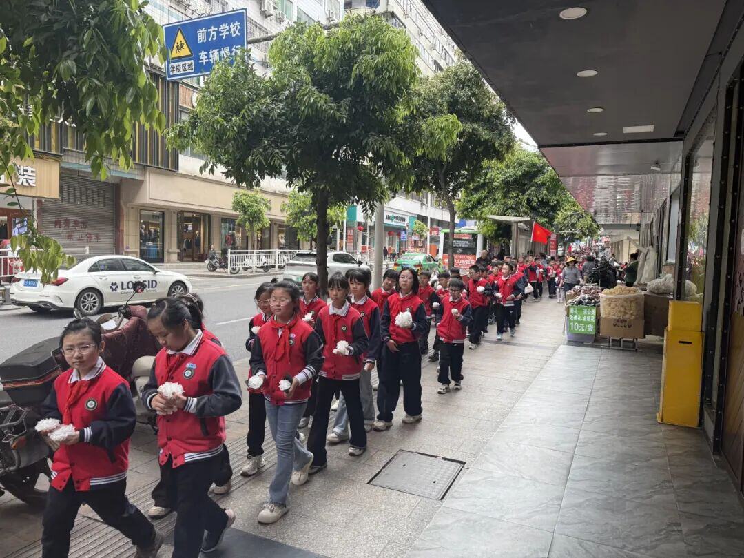 活动前夕,文华街小学的同学们便以虔诚之心,在家中精心制作小白花。折纸、裁剪、缠绕、扎束……一双双小手专注而认真,将对英烈的崇敬与追思,细细融入每一片花瓣。大家还认真写下缅怀卡:“先烈们,这盛世如您所愿”“请放心,强国有我”……朴素的文字,承载着最真诚的敬意与少年志向。