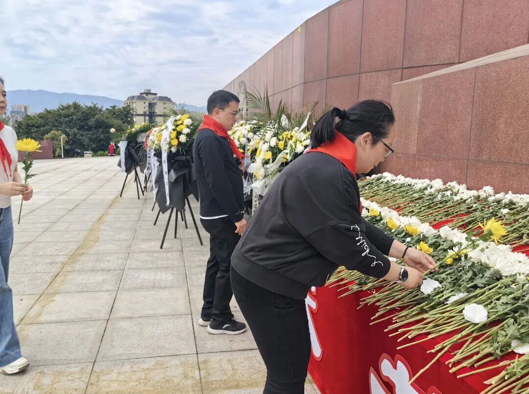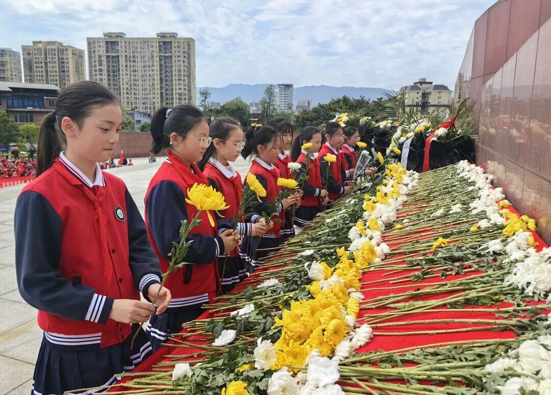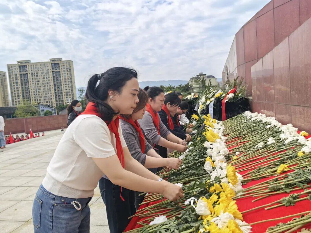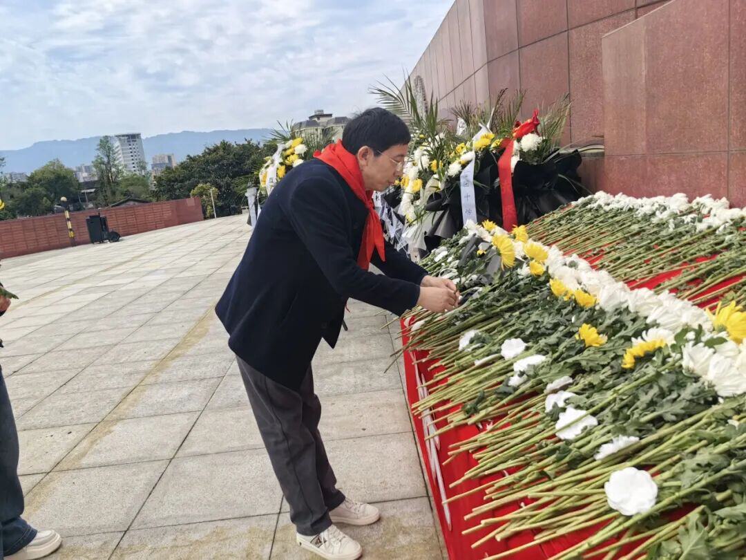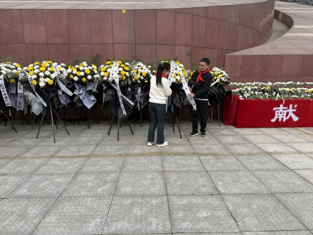 随后,各中队辅导员携学生代表依次上前,敬献鲜花,深深鞠躬。一朵鲜花,一份敬仰;一次俯身,一腔缅怀。敬意与哀思,在静默中悄然流淌。