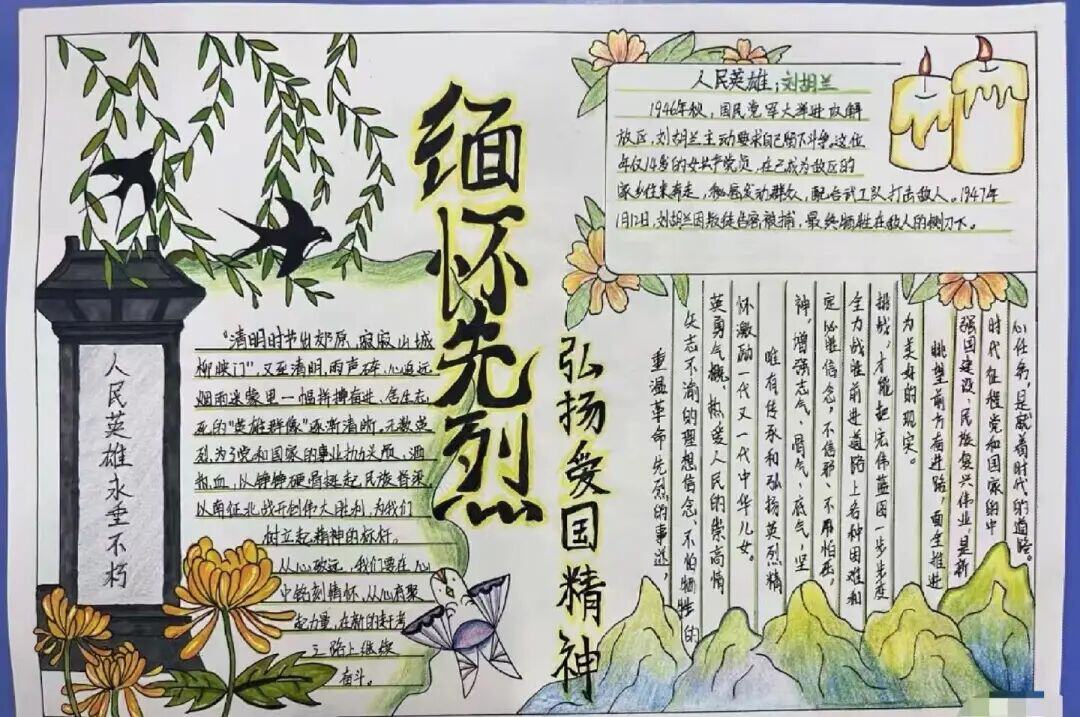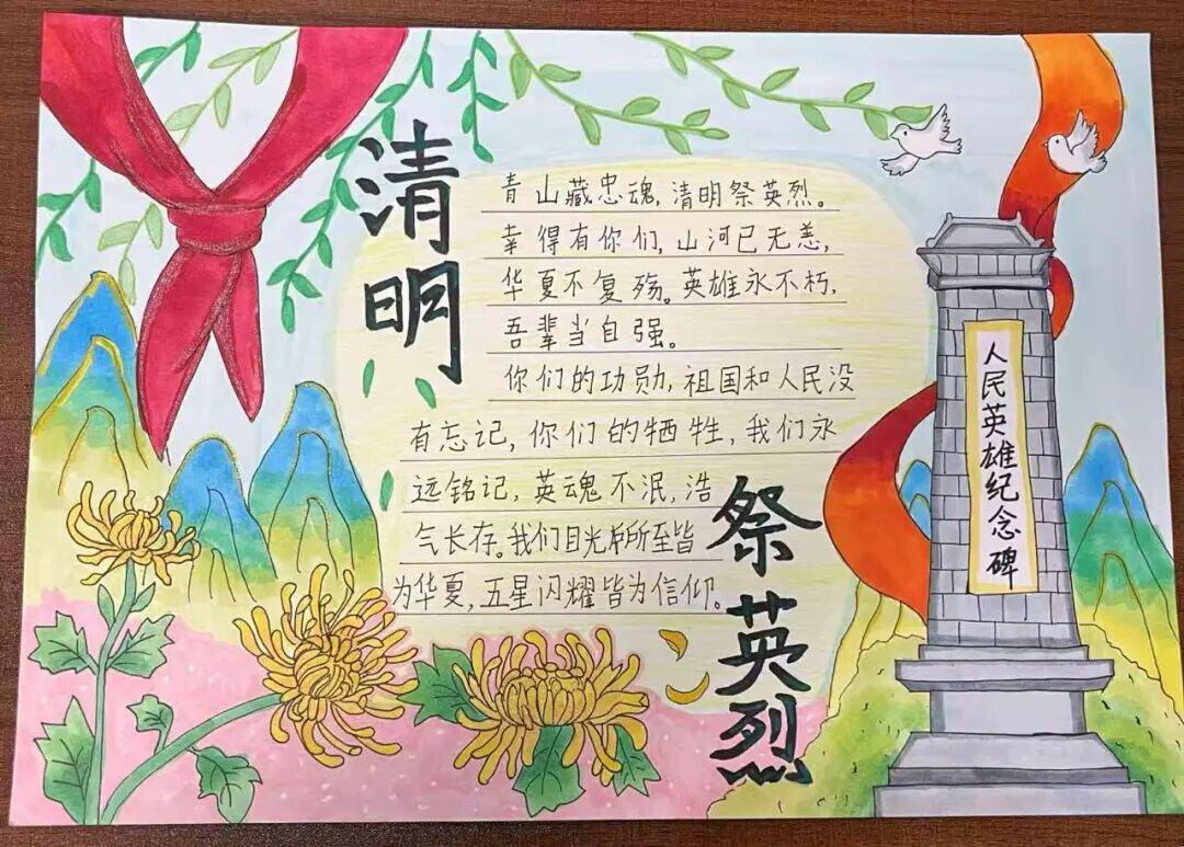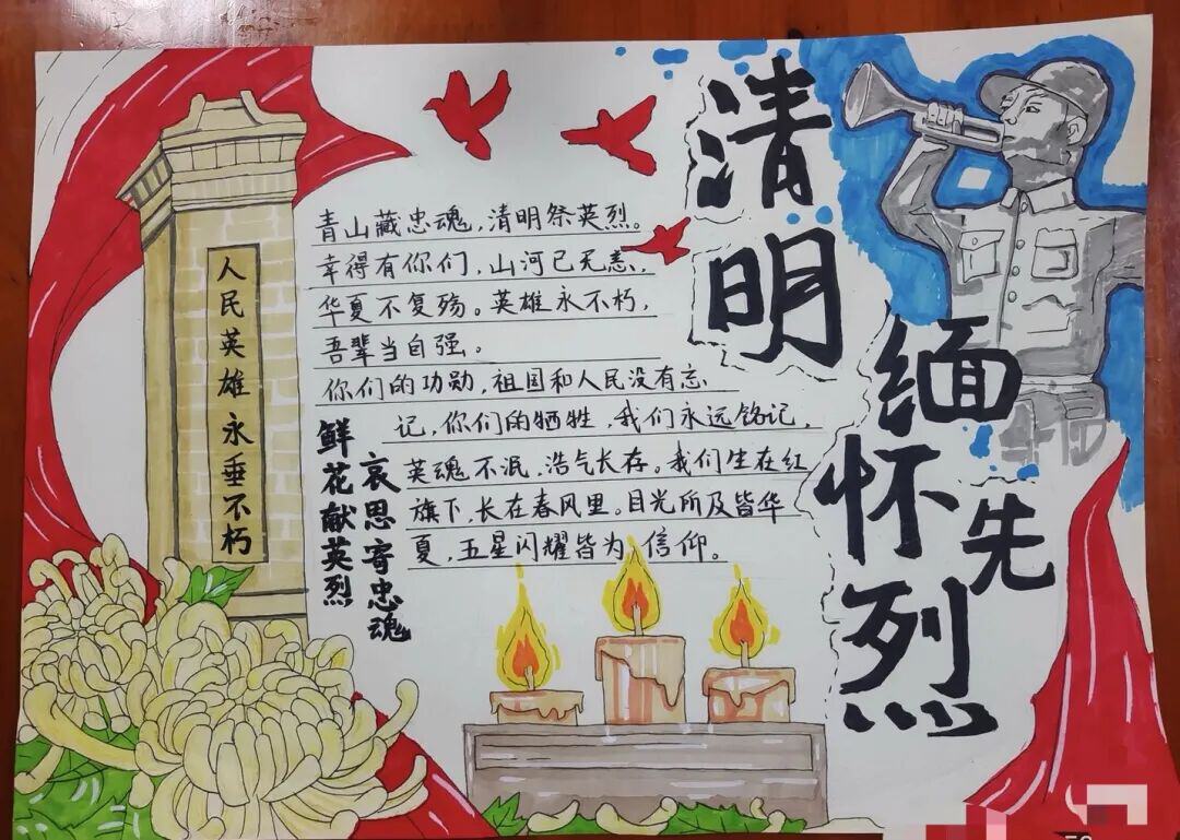 学校同步开展“清明祭英烈”手抄报创作活动。同学们利用课余时间,以画笔勾勒英雄模样,用文字书写感悟心声。一幅幅主题鲜明的作品在校园中展示,让红色精神在笔尖流淌,在校园传扬。