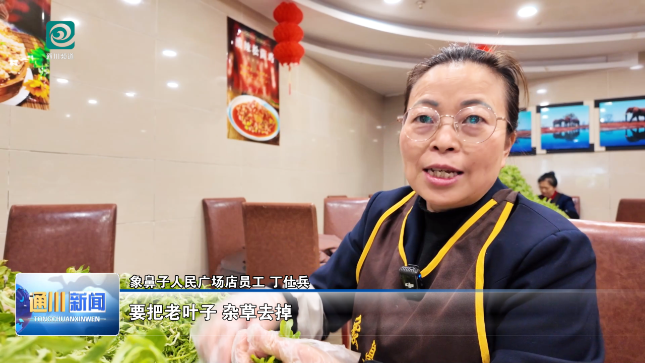 象鼻子人民广场店员工 丁仕兵:做清明(菜)粑粑,要好吃,这些菜要理干净,要把老叶子、杂草去掉,留下最嫩的部分,看嘛,就是留下最嫩的部分。焯水的时候要把控好时间,这样做出来的粑粑颜色才绿,吃起来没有涩味,全是清明菜本身的清香味。