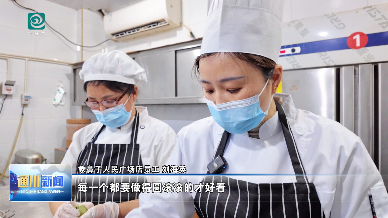 象鼻子人民广场店员工 刘海英:我们这馅都是自己炒的,用料足,吃起来才香。包的时候手要轻,剂子大小均匀,要合适,一样的,馅要放得不多不少,收口要捏紧,不然蒸的时候容易露馅,每一个都要做得圆滚滚的才好看。