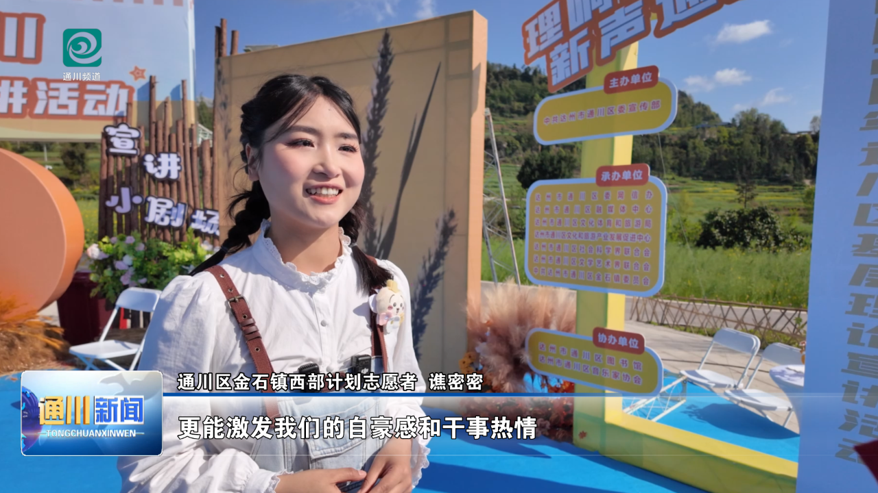通川区金石镇西部计划志愿者 谯密密:通过此次宣讲活动,让更多人了解金石的自然风光,民俗文化和乡村特色,不仅能提升金石的知名度,吸引更多游客前来,更能激发我们的自豪感和干事热情。
