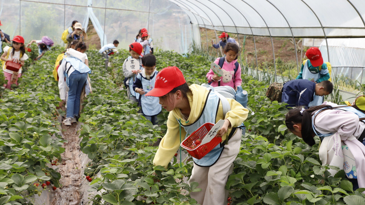 除了室内特色托管,户外游学实践同样精彩纷呈。4月16日,区青少年宫组织托管班学生前往磐石镇,将课堂搬到田园间、自然里。在磐石蝴蝶谷,孩子们近距离观察动物、体验游乐设施,参与趣味抢答和户外拓展课程,在欢声笑语中锻炼团队协作能力。随后,孩子们走进秦巴农耕文化博览馆,在老师的讲解下认识传统农具与农事技艺,体会先民智慧。在草莓采摘园里,亲身体验收获的喜悦,感受劳动带来的快乐。