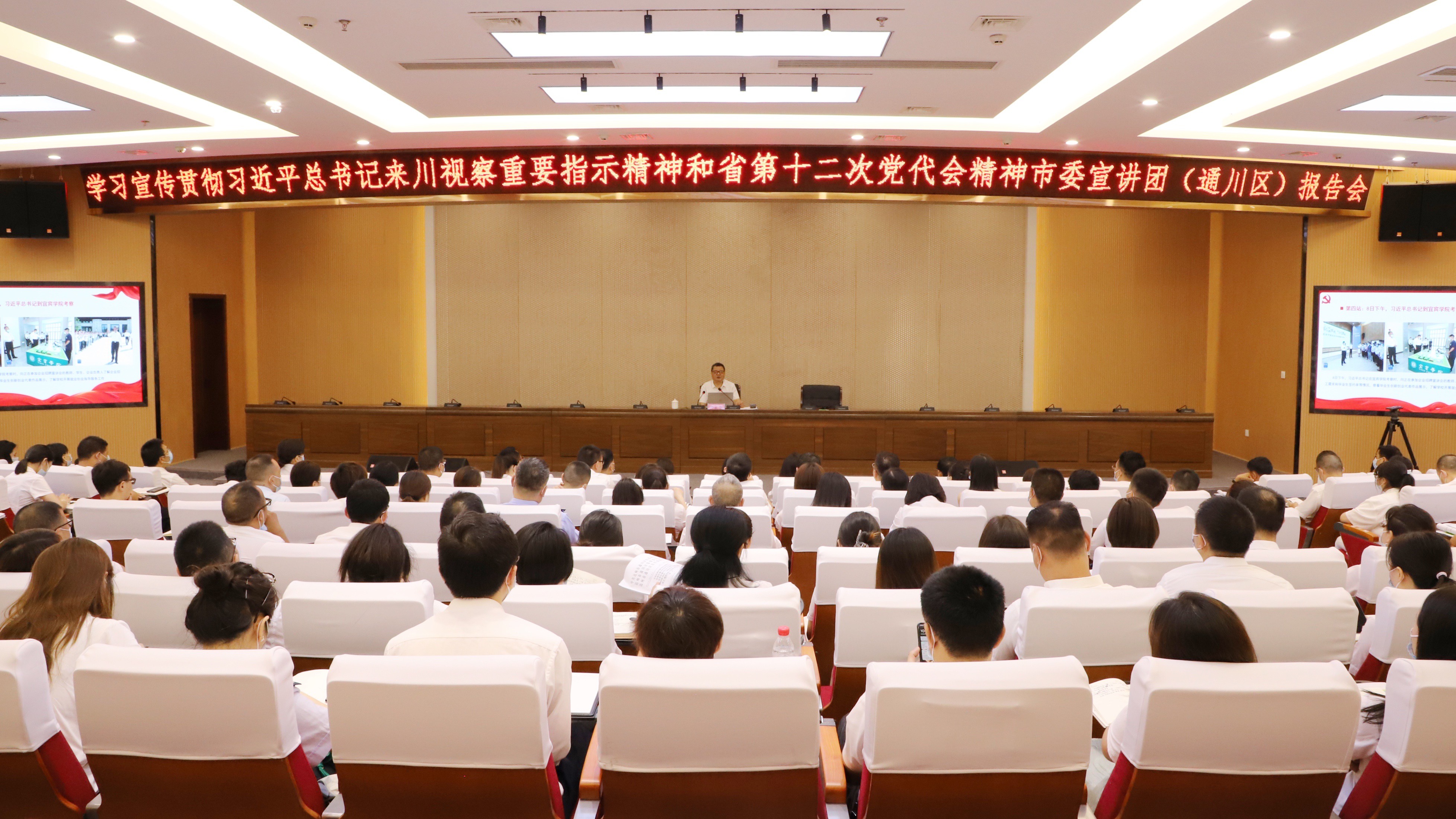 6月29日,学习宣传贯彻习近平总书记来川视察重要指示精神和省第十二次党代会精神市委宣讲团(通川区)报告会举行,市委讲师团专职讲师、市社科联三级调研员邓良智就进一步理解和学习习近平总书记来川视察重要指示精神和省第十二次党代会精神作专题辅导,为在场党员干部上了一堂扎实生动的“理论课”。区委书记李祝荣主持报告会。区政协主席刘菁出席报告会。