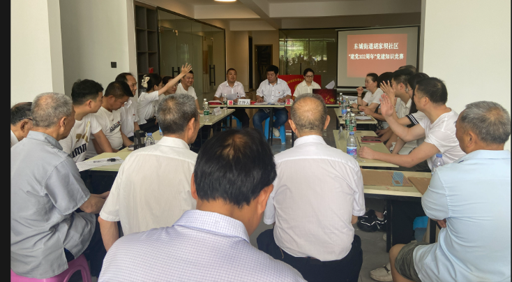 在“中共共产党成立102周年”来临之际,为进一步加强胡家坝社区党员同志的党史学习教育,积极营造团结向党、健康向上的良好氛围,更好地传承红色基因。胡家坝社区以“学党史守初心、勇做时代新人”为主题,于2023年6月30日举行了党建知识竞赛。