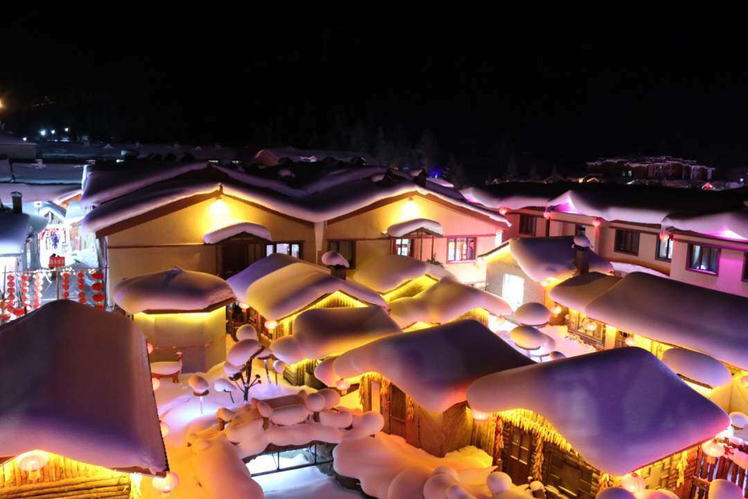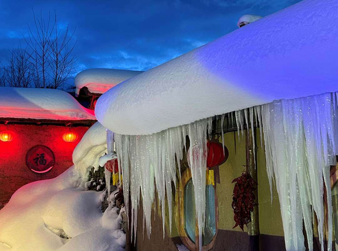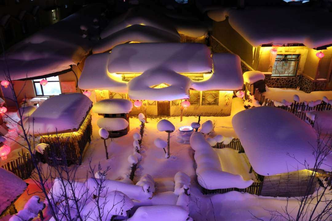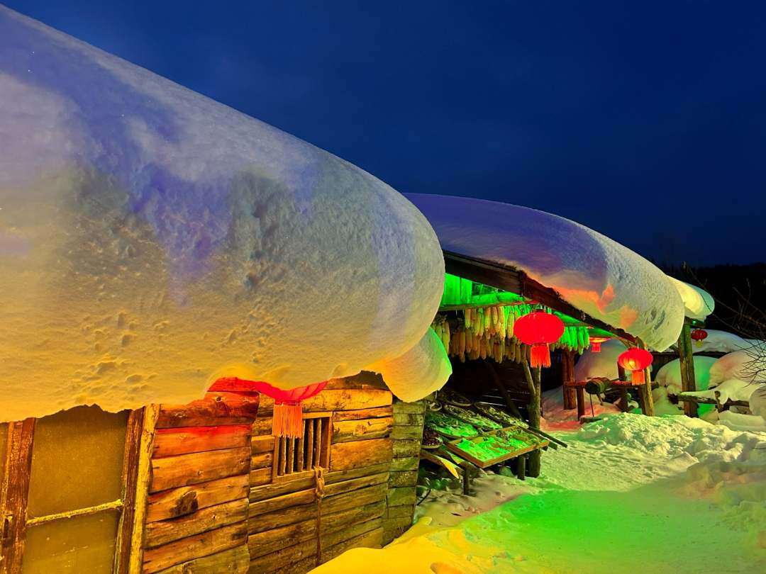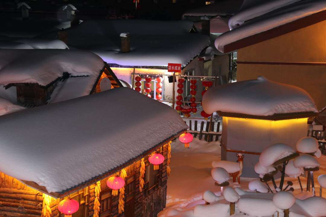 皑皑白雪配上火红的灯笼,仿佛置身于童话世界,这就是中国雪乡。(人民日报记者 郭晓龙 摄)