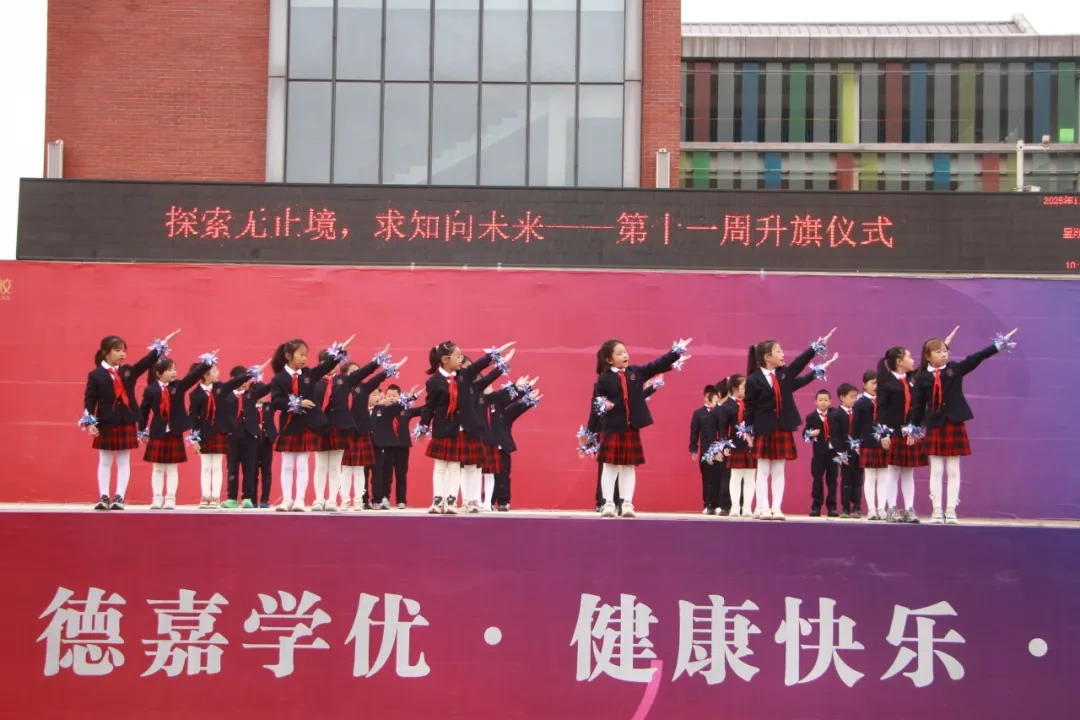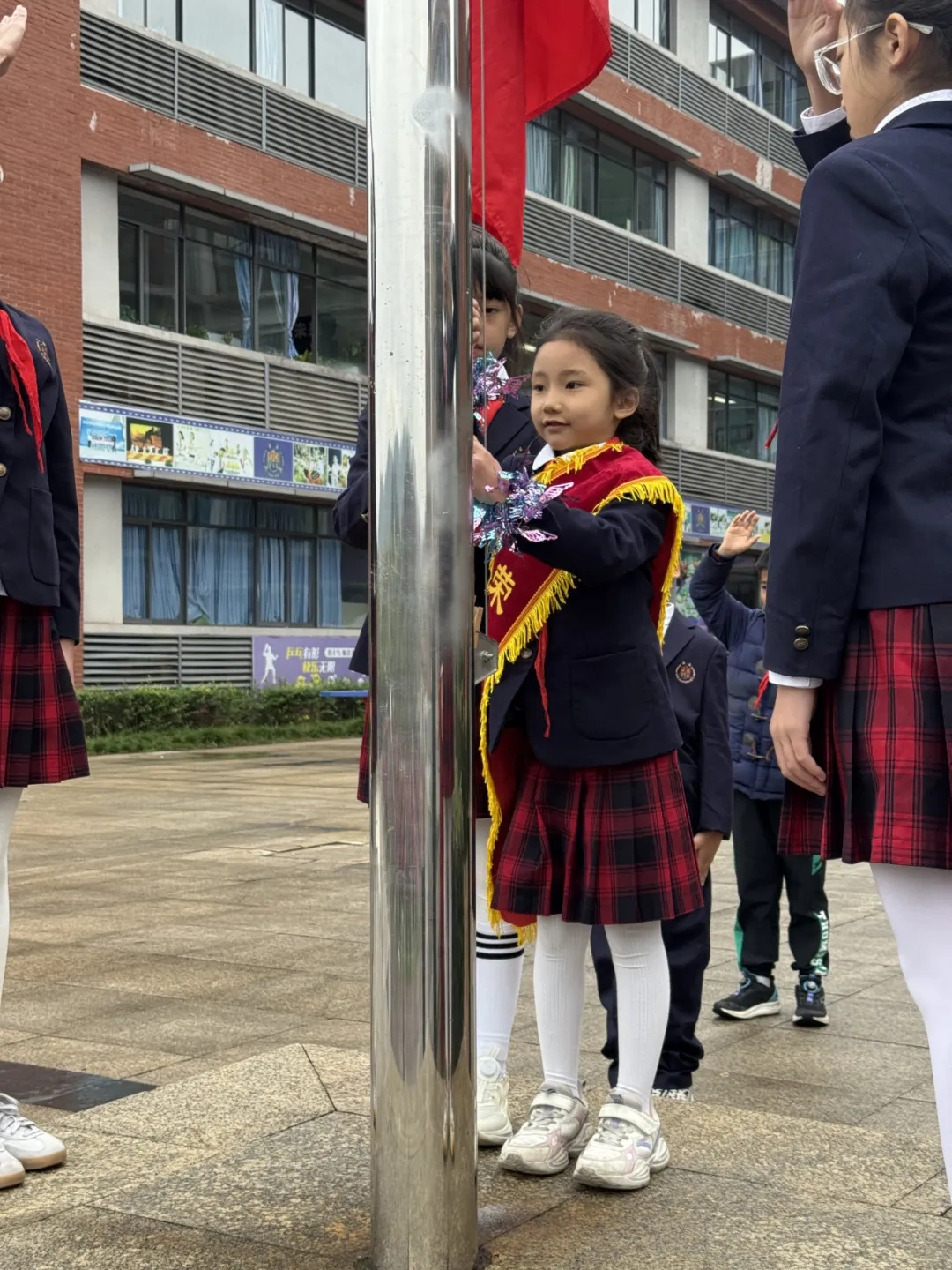 升旗仪式 11月10日上午,达州嘉祥外国语学校举行了《探索无止境,求知向未来》主题升旗仪式。同学们进行了国旗下主题演讲。升旗仪式中,校领导为本周荣誉旗手三一中队周念颐同学颁发了荣誉证书,并为文明班级、优嘉班级、文明寝室颁发了奖状和流动红旗。