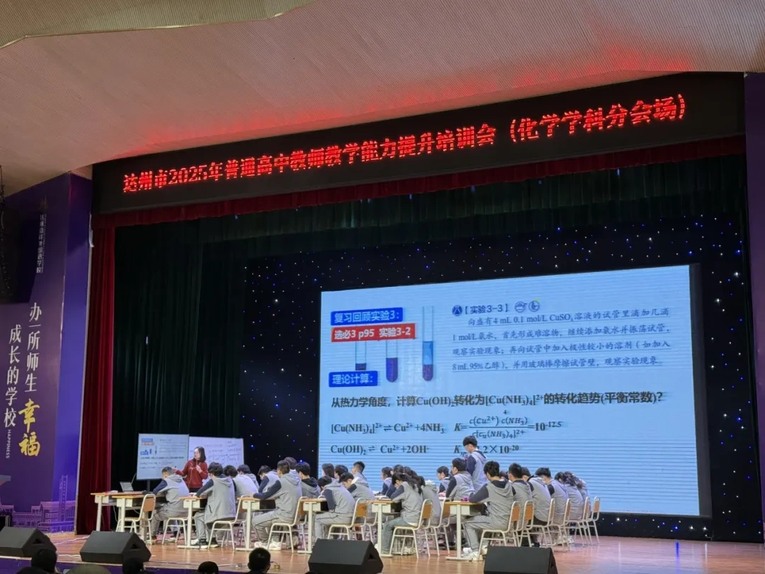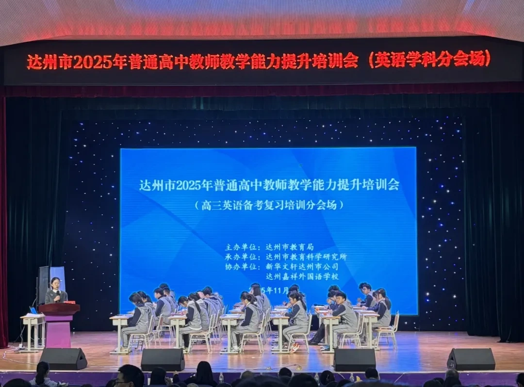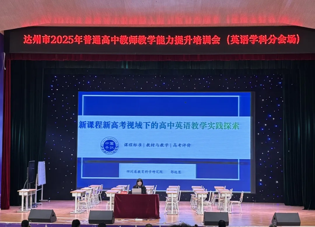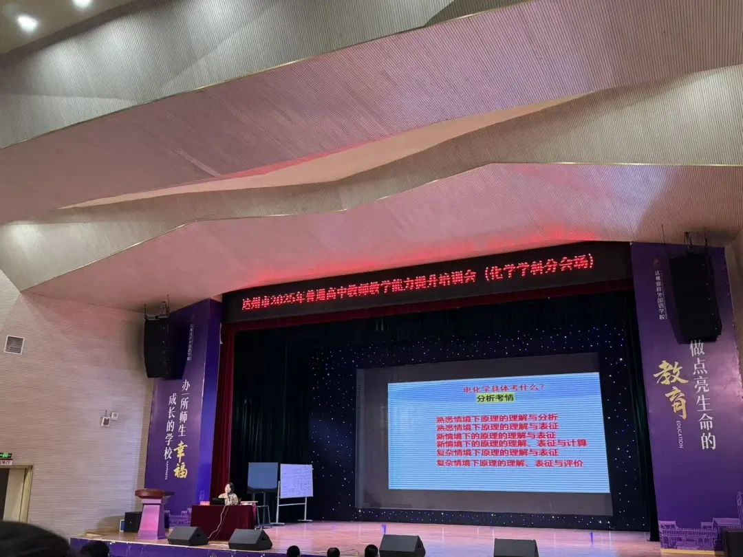 02 达州市2025年普通高中教师 教学能力提升培训会 高三英语备考复习培训分会场 11月4日上午,达州市教育局主办的“达州市2025年普通高中教师教学能力提升培训会”高三英语备考复习培训分会场在我校顺利开展。 活动中,简阳中学李元清老师呈现《0utstandingIndividuals》示范课,为高效复习提供鲜活范例;省教科院郭远慧老师围绕新高考作专题讲座,剖析“教、学、考”融合路径,明确教学方向。大竹中学叶小伟、达州一中张国龙两位老师,则结合教学实践,分享复习计划制定、真题运用等实战经验。下午,郭远慧老师带领参会教师聚焦教考融合展开研讨,解读高考命题技巧。 整场活动干货满满,有效提升教师备考能力,为达州高三英语教学注入专业动力。 03 达州市2025年普通高中教师 教学能力提升培训会 高三化学备考复习分会场 2025年11月5日上午,由达州市教育局主办的达州市2025年普通高中教师教学能力提升培训会“高三化学备考复习分会场”在我校顺利举行。活动中,棠湖中学冷丹老师展示了一节题为《是真的吗--沉淀溶解平衡》的示范课,为高效复习提供了生动范例;省教科院马红艳老师围绕“一诊”复习中存在的问题开展专题讲座,深入剖析一轮复习常见误区,明确教学方向。达州第一中学申雯老师则结合自身教学实践,分享了复习计划制定与高考真题运用的实战经验。下午,大竹中学侯松平老师组织参会教师围绕“教考融合”展开专题研讨,并对高考命题思路与技巧进行了系统解读。 整场培训内容详实、重点突出,有效提升了高三化学教师的备考教学能力,为达州市2026届高三化学复习注入专业动力。