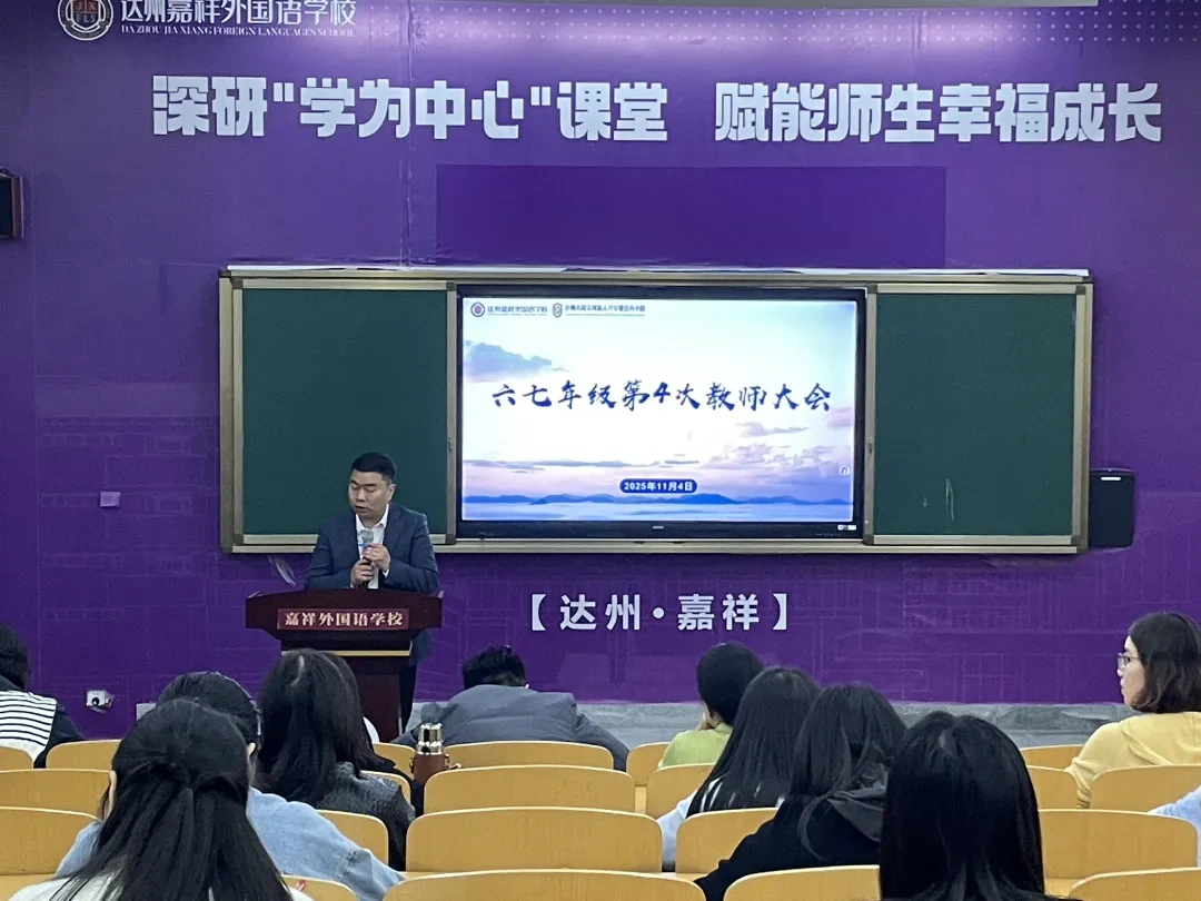 04 巴文化课题小组赴达州市宣汉县 开展巴文化探究学习 2025年11月7日,巴文化课题小组赴达州市宣汉县开展巴文化探究学习。首站拜访宣汉县民间文艺家协会会长桂德承老师,获其对巴文化传统歌谣的专业指导;第二站造访民间收藏家丁耀庭老师,观其珍藏的巴文化相关民间艺术品;第三站到宣汉县土家民俗文化传承基地,在赵昌平老师的引领下,观摩民俗活动,感受巴文化动态态传承;最后一站观看《梦回巴国》沉浸式演出。此次宣汉之行,小组通过探访交流、采风学习,深化了对巴文化的理解,为巴文化课题研究、艺术节展演找寻新思路。 05 嘉祥集团物理首席专家周昌鲜入校指导 11月5日上午,嘉祥集团物理首席专家周昌鲜老师先后深入初三和高三年级李飞影和庞楠老师的课堂进行指导。尹校、杜校、吴校、刘校助陪同听课。课后,周老师与授课教师及物理组教师进行了深入交流。本次活动为初三、高三物理复习备考提供了宝贵的经验指导,也进一步明确了课堂教学改革的方向,物理组会一直致力于打造更具活力与实效的物理课堂。 06 嘉祥教育“领雁计划”高级研修班首期培训 11月3日,在陈永红副校长的带领下,白皓、冯丹、黄安川、胡小雅四位老师共同参加嘉祥教育“领雁计划”高级研修班的首期培训。本次培训以课堂教学为依托,内容涵盖教育理念方法论与知识拓展,旨在让学员们系统学习教育家思想,深刻感悟教育家精神。 07 六七年级第四次教师大会
