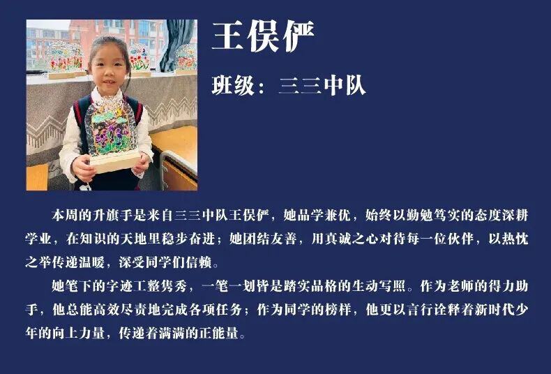 本周荣誉旗手 高2025级1班 李柯男 三三中队 王俣俨