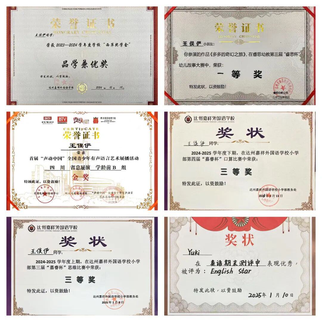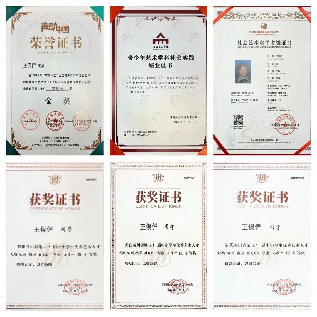 大家好,我是王俣俨。成长于我而言,是一段在求知与热爱中不断发现自我的旅程。我享受在课堂上学海拾贝的专注,也沉醉于在艺术世界里挥洒灵感的畅快。 在班级中,我努力成为一缕温暖的阳光。我不仅自己热爱艺术,更乐于与同学们分享这份美好。无论是组织文艺活动,还是帮助同学一起排练,我都希望能用自己对艺术的热情,点亮集体的氛围,让我们的班级因艺术而更加团结和生动。 课堂之外,我的生活由动与静共同描绘。舞蹈赋予我舒展的活力和坚持的韧性;钢琴则教会我沉静思考,用心感受每一个音符背后的情感。而通过播音主持,我学会了自信地表达,用声音传递思想和力量。这一动一静,让我既拥有青春的朝气,也懂得内敛与沉淀。 过往的耕耘让我收获成长,但未来更让我心怀向往。我将继续带着对知识的好奇与对艺术的热忱,脚踏实地,不断前行。我渴望成为一个内心丰盈、敢于追梦的人,用我的努力去温暖世界,奔赴属于我的星辰大海。 以艺润心,以学筑梦,以行证道。 愿你始终保有感知美好的心灵和勤勉踏实的脚步,让艺术成为你飞翔的翅膀,让学识成为你立足的根基。前行路上,勿忘传递温暖,与光同行。 你始终以品学兼优的姿态闪耀在班级中。作为班长,你是老师最可靠的帮手,总能高效分担事务;作为同学,你以乐于助人的热忱温暖他人,成为大家心中的榜样。愿你继续带着这份优秀与担当,在成长路上步履不停,绽放更耀眼的光芒!