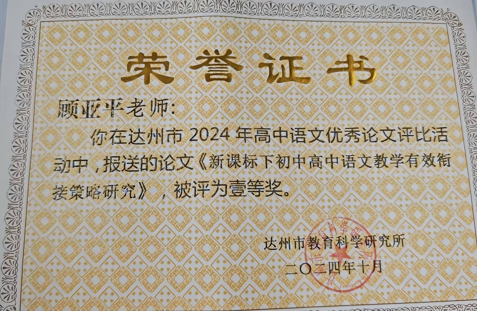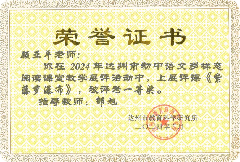 科研方面,她参与省级课题研究,形成具有推广价值的语文素养培育路径。撰写的教学论文在市级初高中优质论文评选中多次获得一等奖。同时担任高校"卓越教师培养计划"导师,推动高校与基础教育协同育人机制建设。