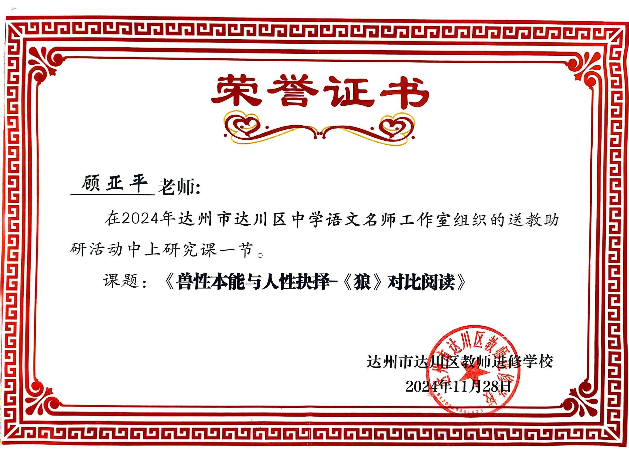 在教学实践领域,她多次承担市级示范课教学任务,创新设计的情境化阅读课堂获高度认可,教学案例入选集团教研优质资源库。近2来在市级教学竞赛中荣获一等奖,课堂实录一等奖,并多次受教科所邀请开展专题研讨课及讲座,助力青年教师专业成长,在区域内形成辐射带动效应。