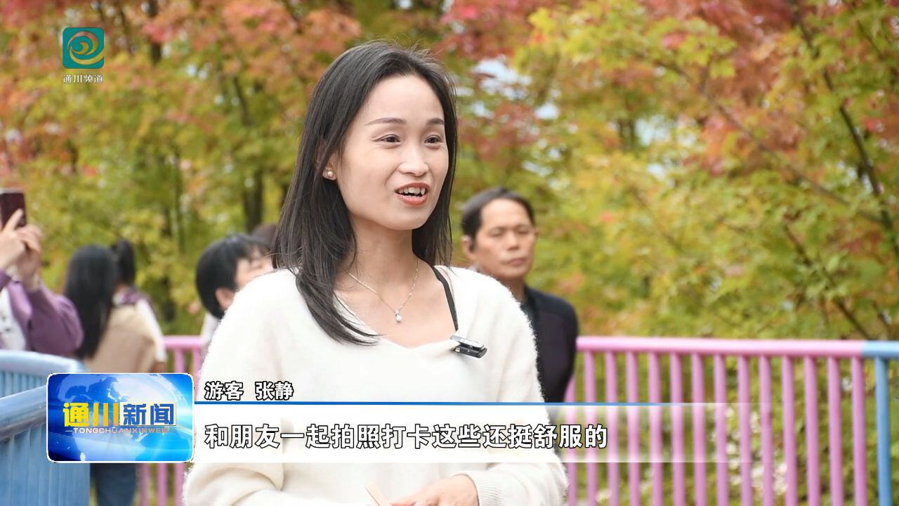 游客 张静:景色很漂亮,枫叶也很红,心情很开心,和朋友一起拍照打卡这些还挺舒服的。