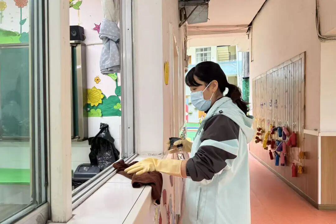 同步推进环境优化,老师们分工协作,对园区全域细致清扫、全方位消毒消杀;结合幼儿发展需求更新主题墙、优化教具投放,让空间兼具安全与教育性。