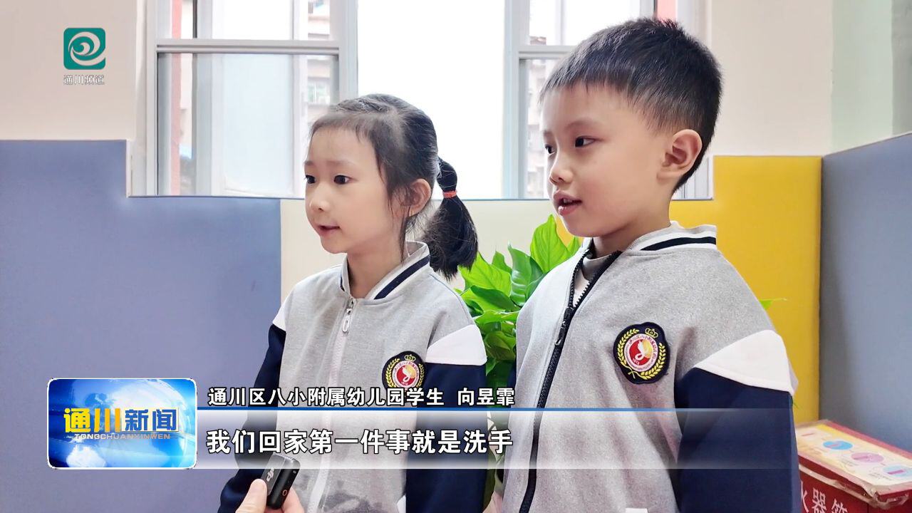 通川区八小附属幼儿园学生 向昱霏:我们回家第一件事就是洗手。