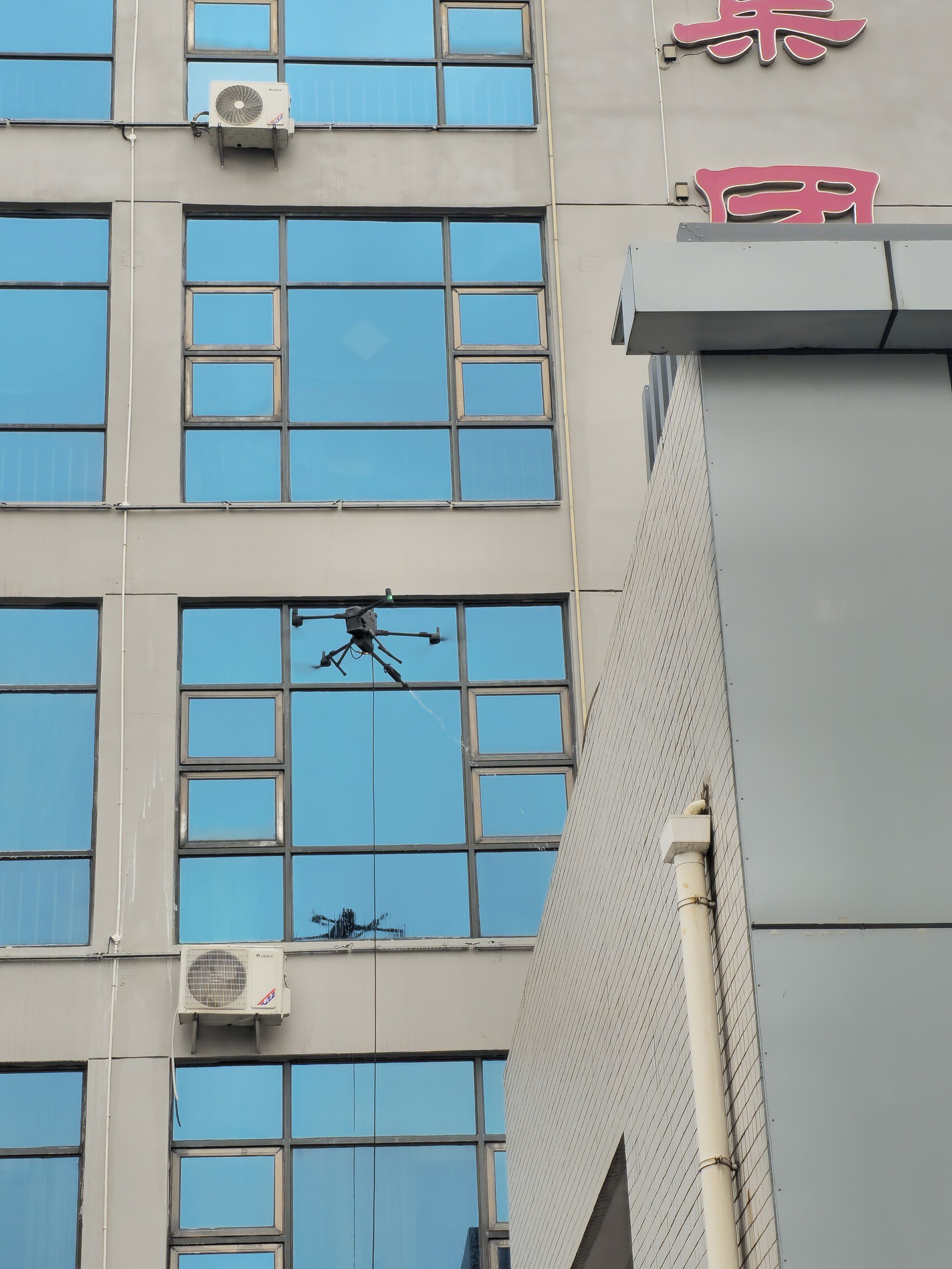 过去,这项工作主要依靠“蜘蛛人”——他们悬坐在与绳索相连的木板上,完成高空清洗。但这种传统作业方式,面临着高风险、高成本与劳动力短缺“三座大山”。如今,一种替代方案正悄然兴起:让无人机上场。