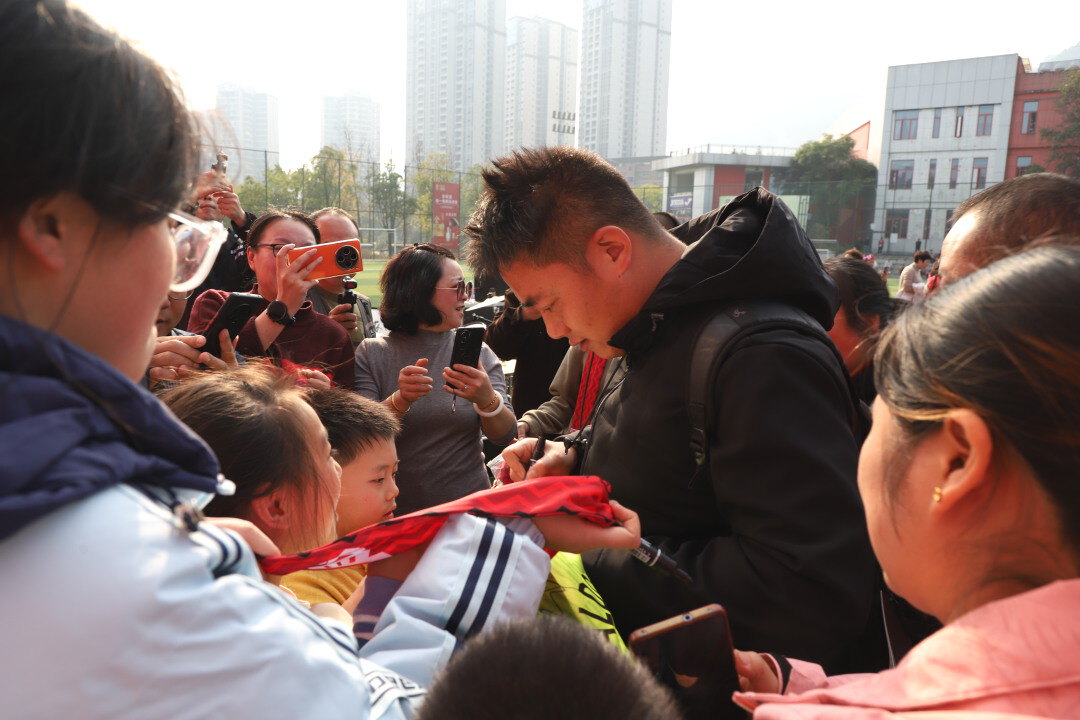签名墙前,球迷们列队汇成一条热情通道,用掌声与欢呼迎接川汉子队球员的到来。现场秒变“追星”现场,大家争先恐后地与心仪的球员签名、合影,场面温馨而热烈。“看到有这么多球迷支持我们真的感到很幸福,这些互动也增强了我们球员和球迷间的感情,希望第二阶段能用更好的成绩回报大家。”川汉子队队员陈杰说道。