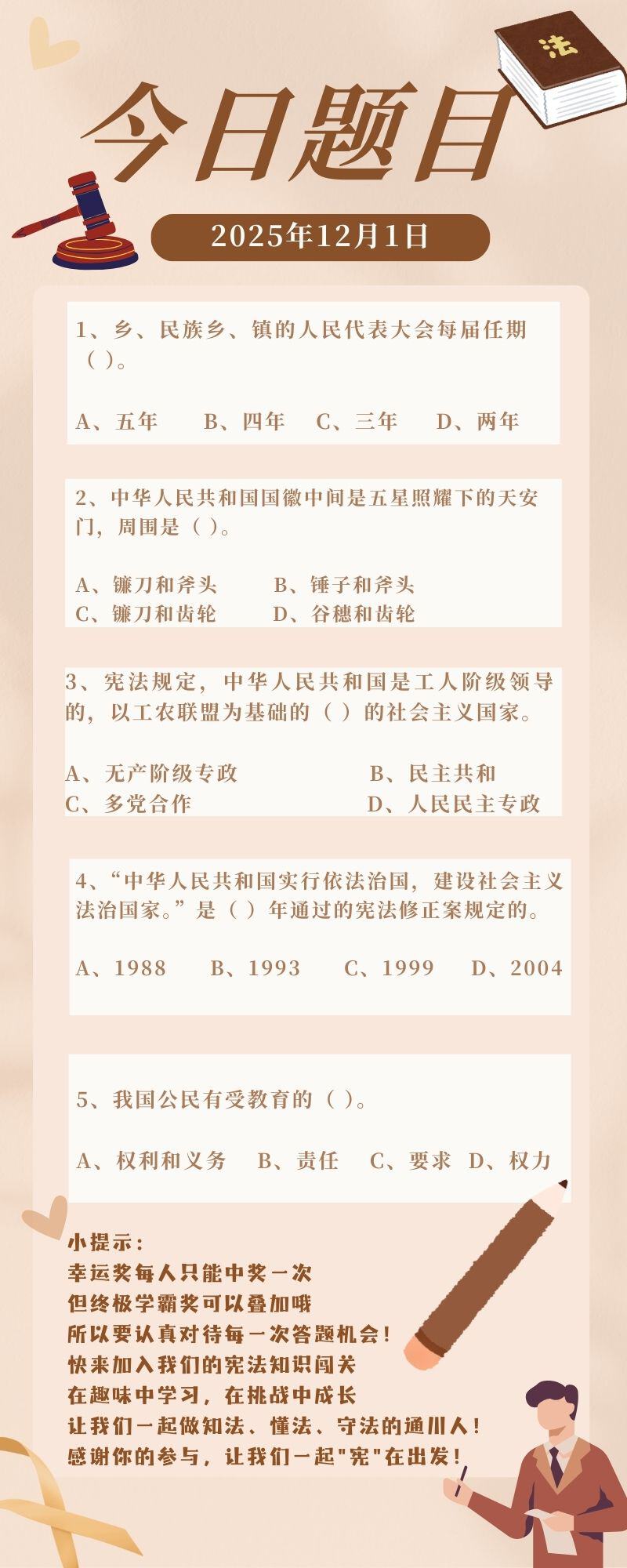 2025年通川区宪法宣传周知识闯关开始啦(12月1日) 今日通川 2025-12-01 10:00 3031 打开微信“扫一扫”,打开网页后点击屏幕右上角分享按钮 评论 44 石磊 2025-12-02 ADDCA 蓝色永恒 2025-12-02 ADDCA Vivi80315 2025-12-01 ADDCA 我要评论
