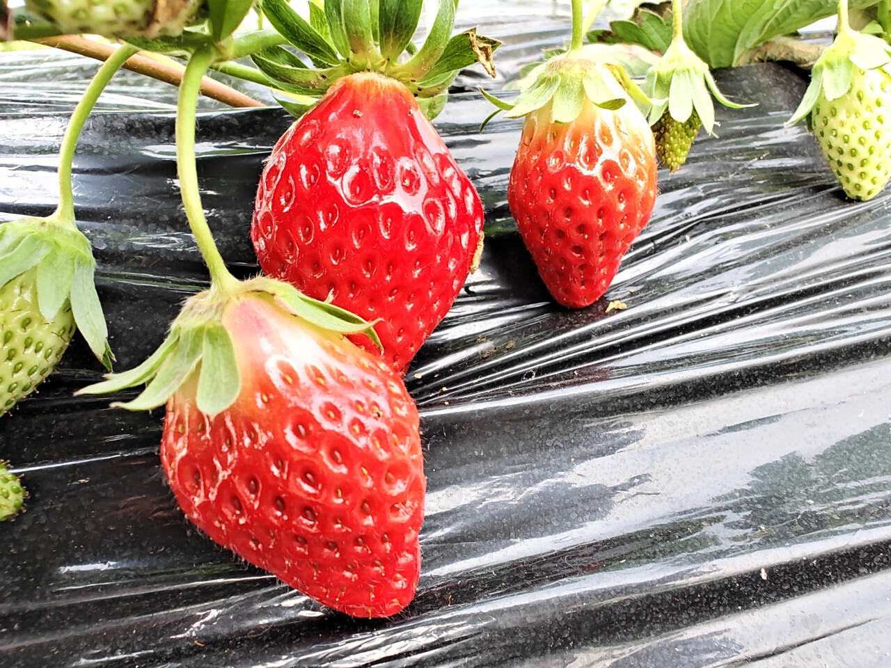 鲜红草莓挂满枝头