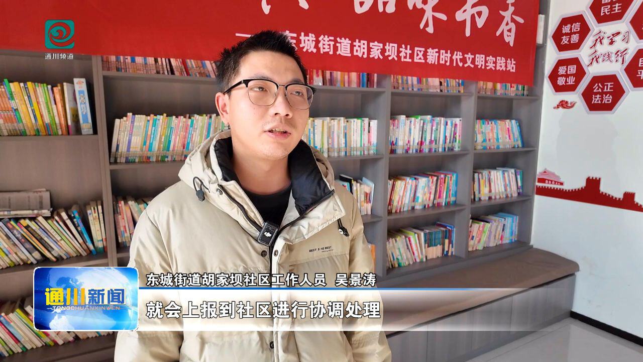 东城街道胡家坝社区工作人员 吴景涛:我们每周至少要对分管网格的居民进行一次入户走访,看看他们家里有什么困难,听听大家对社区工作的建议。如果能当场解决的,我们就当场办;如果遇到不能解决的,我们汇总之后,就会上报到社区进行协调处理。