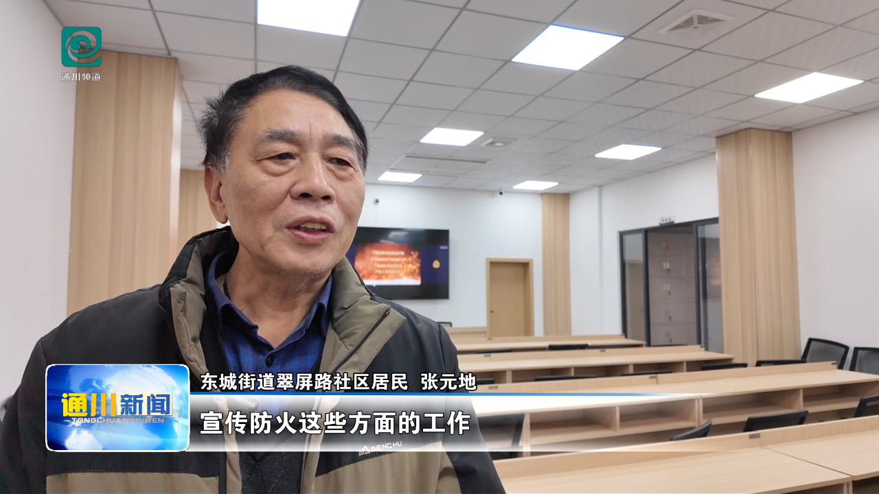 东城街道翠屏路社区居民 张元地:我们社区这些工作人员随时给我们小区宣传防火这些方面的工作。