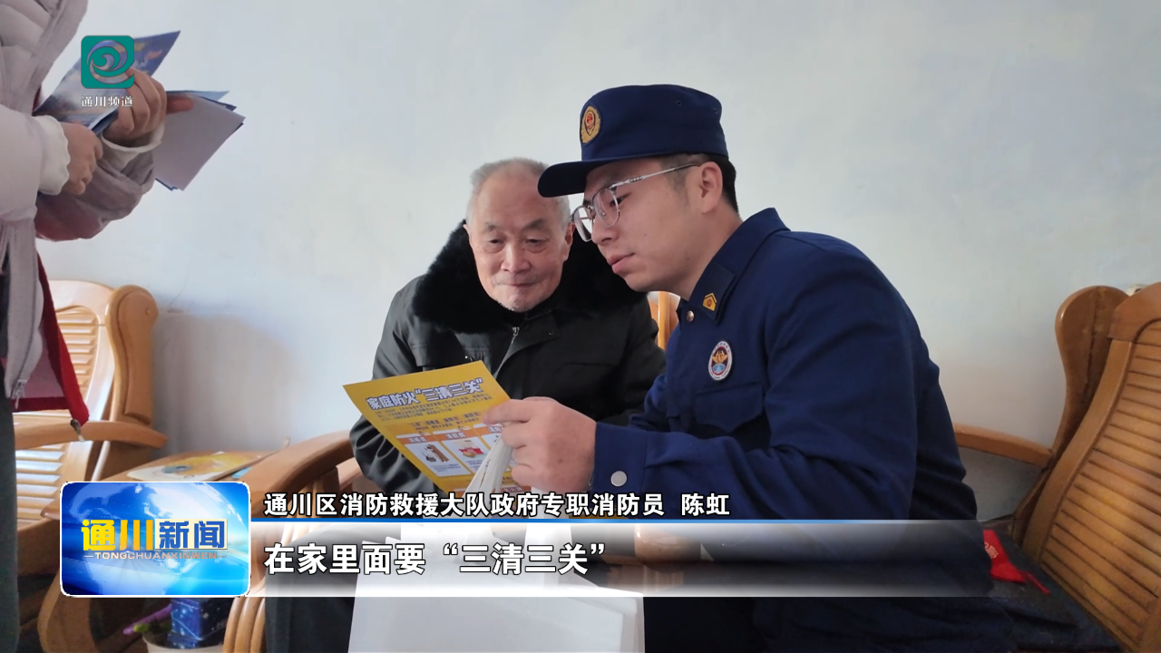 通川区消防救援大队政府专职消防员 陈虹:叔叔,我给你看一下,在家里面要“三清三关”,清理阳台,清楼道,清厨房,主要是把周围的可燃物清理了,就会安全些,三关就是关火源,关电源、关气源。