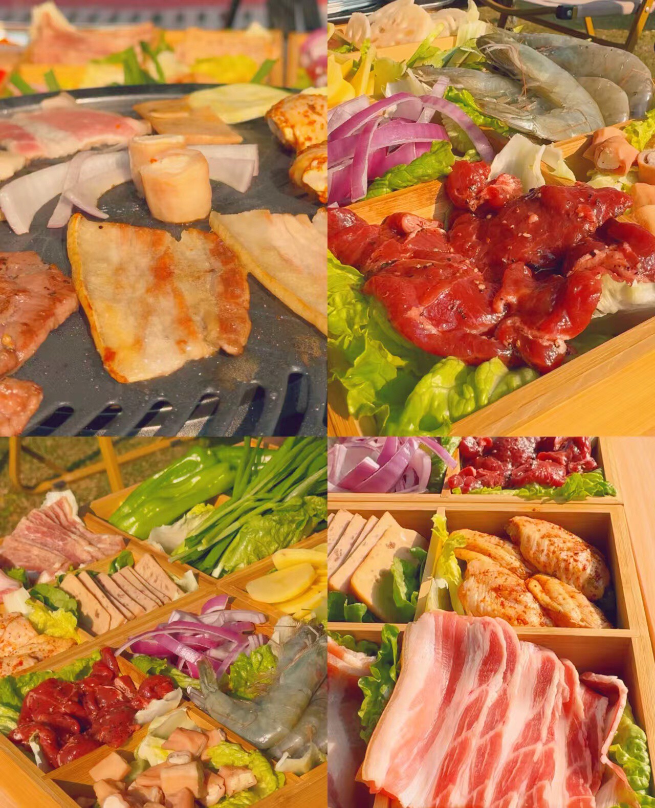 和家人好朋友围坐一起听着烤肉滋滋作响