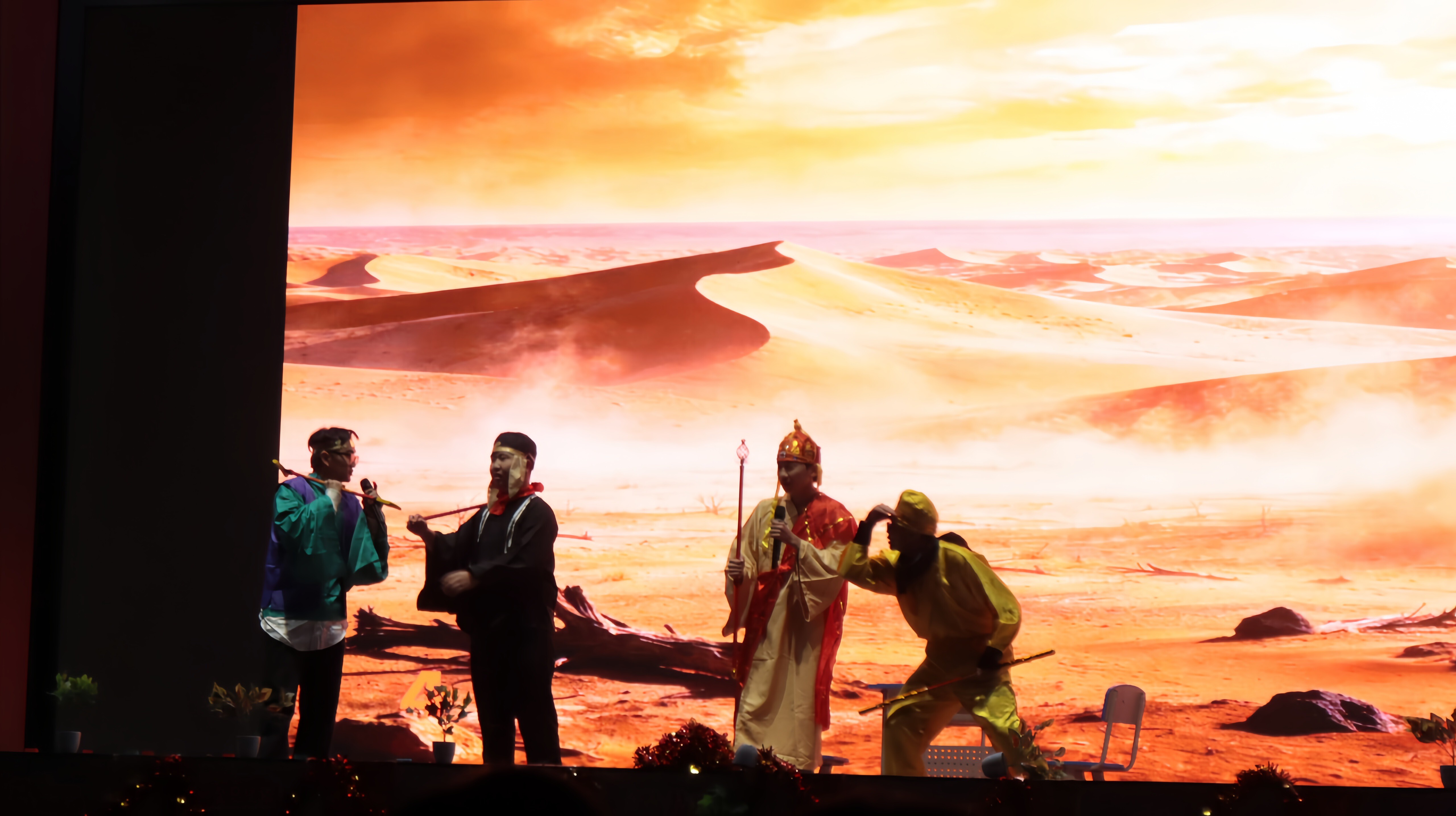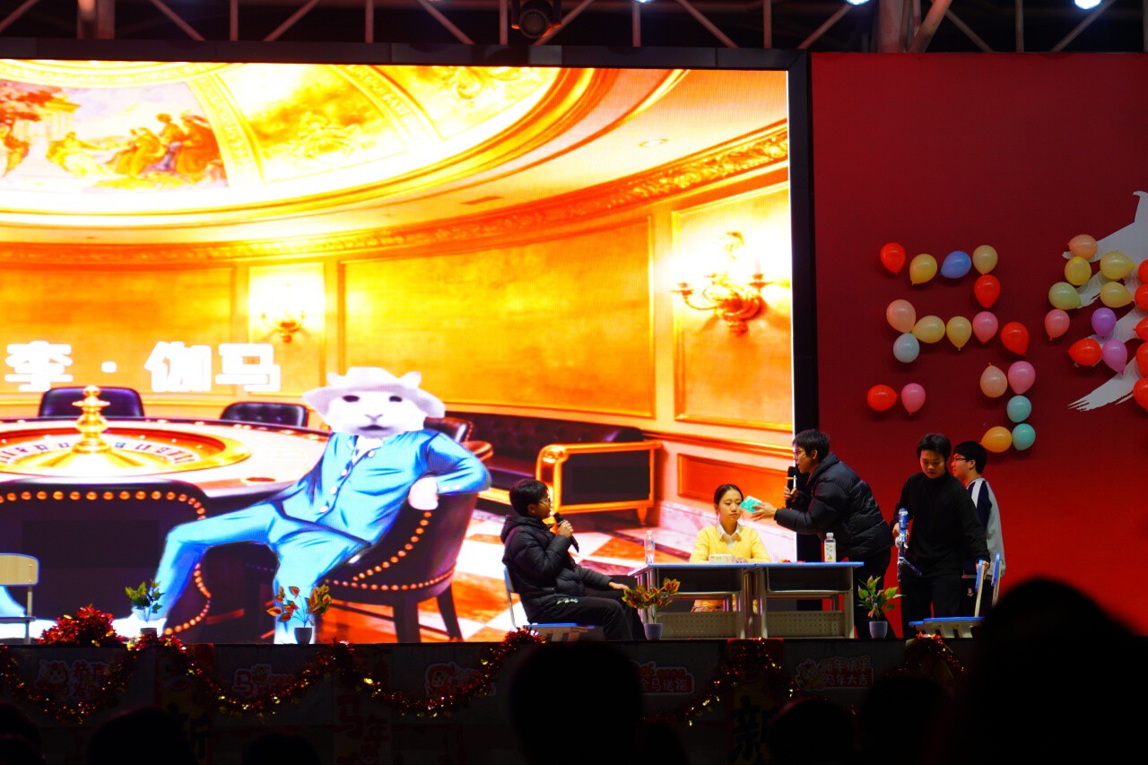 中场休息环节的游戏互动将晚会氛围推向又一个高潮!师生们踊跃参与,趣味十足的抢凳子和成语接龙,搭配马年限定玩偶,让台上台下热情呼应、默契联动。抢凳子环节拉近师生距离,成语接龙环节师生才思敏捷、妙语连珠,尽显鸿鹄师生的学识底蕴与临场智慧。荧光棒随欢呼挥舞摇曳,暖意与热闹交织,为整场晚会增添了满满的烟火气与凝聚力。