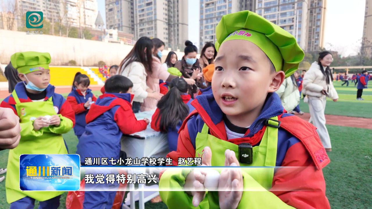 通川区七小龙山学校学生 赵艺程:我今天和老师、同学包汤圆,我觉得特别高兴,特别有趣。