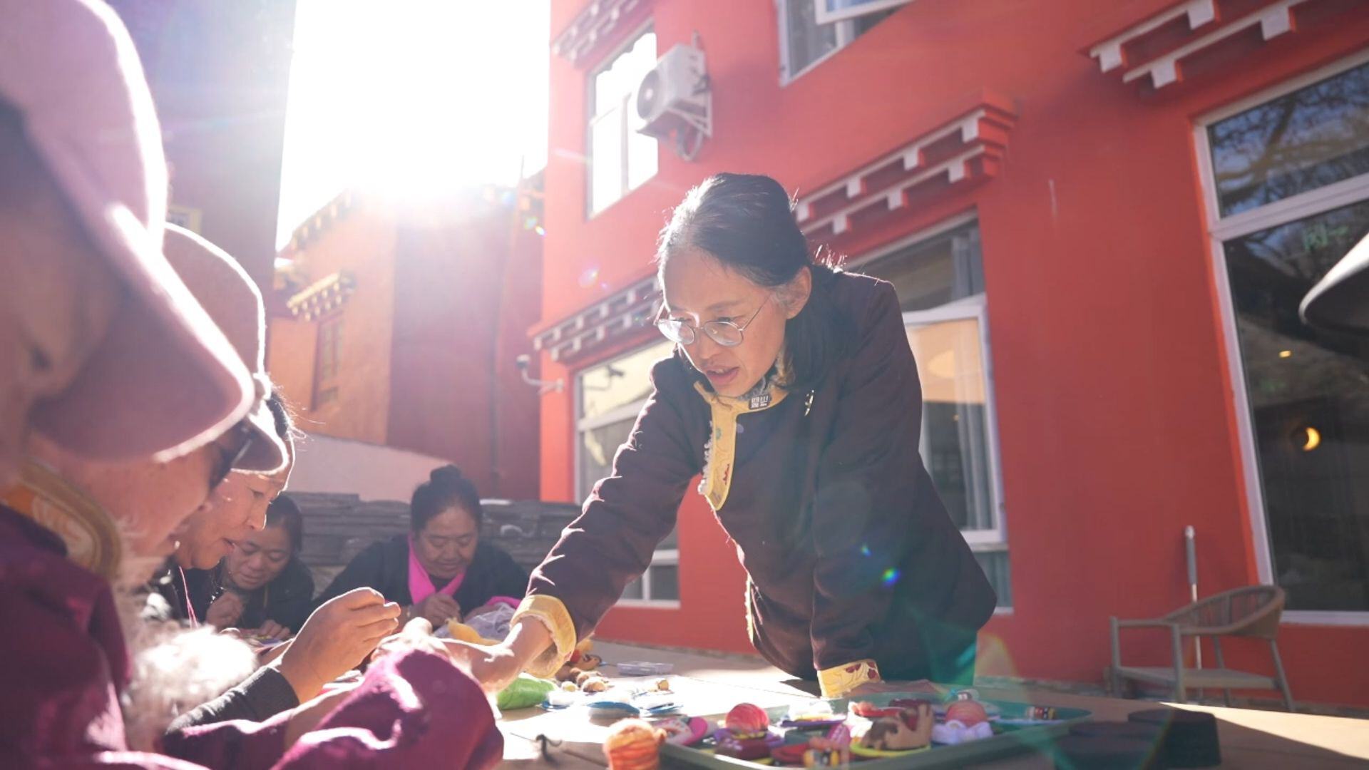 “在这里,我帮助到了我身边的姐妹们,学习了很多新的技能,在教学过程当中,我自己也有非常多的收获,感觉真正地做到了老有所乐,老有所为!”从五年前的退休教师到五年后的“在职”教师,从农牧民妈妈的招募到心理辅导,从手工艺品制作技术的学习到教授妈妈学员们……这背后离不开县妇联主席格桑梅朵和“嘻啵妈妈”的行业主理人、设计师阿卓的鼓励。而四郎翁姆也正以个人为范本,让更多高原农牧区妇女和退休人员看到生活的多样与美好。