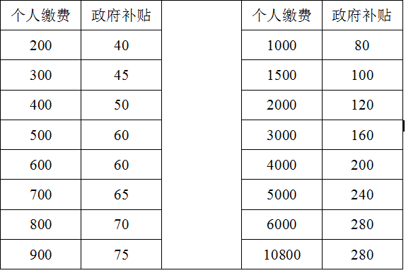 目前缴费档次和对应补贴如下表: