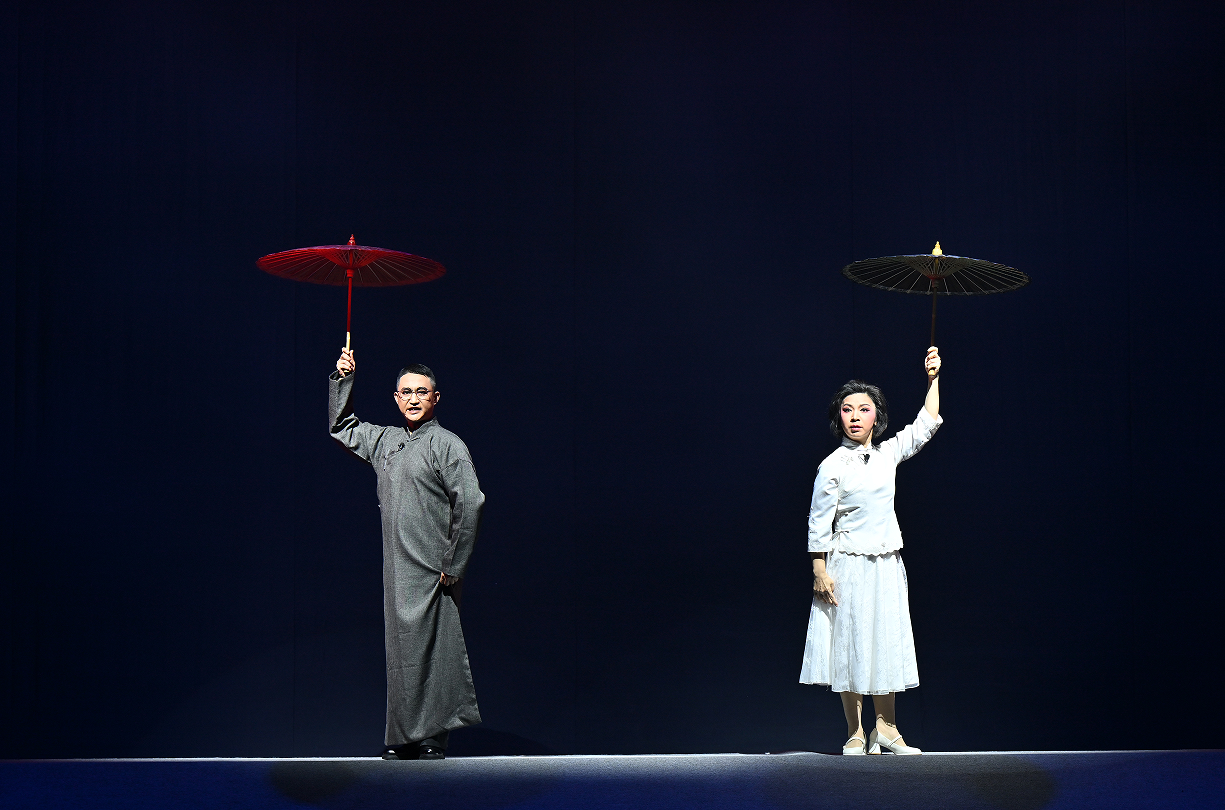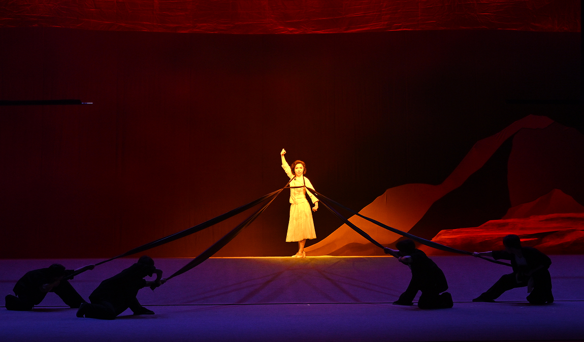 剧终场景尤为震撼人心:铿锵鼓点、象征红旗的璀璨红光与人物英勇就义的经典造型相互映衬,营造出雄浑悲壮的艺术氛围,将杨汉秀矢志革命的赤诚之心升华至顶点。这不仅是对革命先烈的深情致敬,更以传统川剧与现代舞台美学的深度融合,完成了震撼人心的视觉宣言,让革命精神跨越历史时空,在当代舞台焕发新的生机。