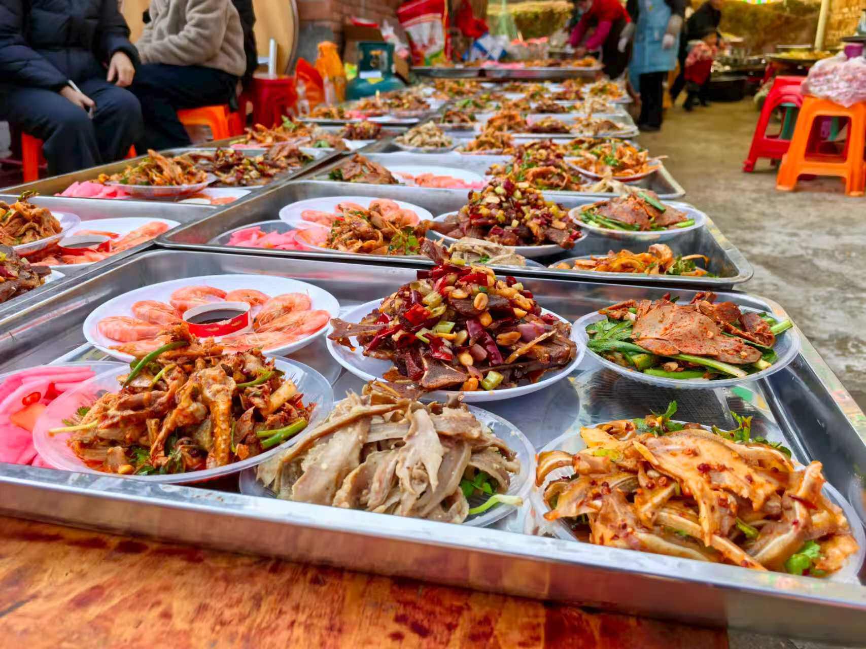 热气腾腾的厨房里,几道“老味道”最是诱人。碑庙米豆腐是达州人过年少不了的传统美食,也是四川省非物质文化遗产,切成方块、淋上红油,入口软糯,满嘴家乡滋味。腊肉和香肠挂在灶头熏了月余,切开后油润透亮,香气扑鼻。这些带着年味和乡愁的家常菜,成了团圆宴上当仁不让的主角。