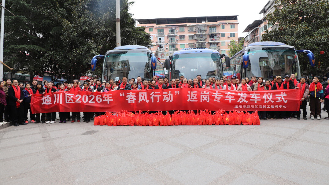 春潮涌动启新程,暖心服务伴行远。2月26日上午,通川区2026年“春风行动”返岗专车发车仪式暨2026年“春风送岗 筑梦未来”专场招聘会在通川区蒲家镇隆重举行,活动现场气氛热烈。