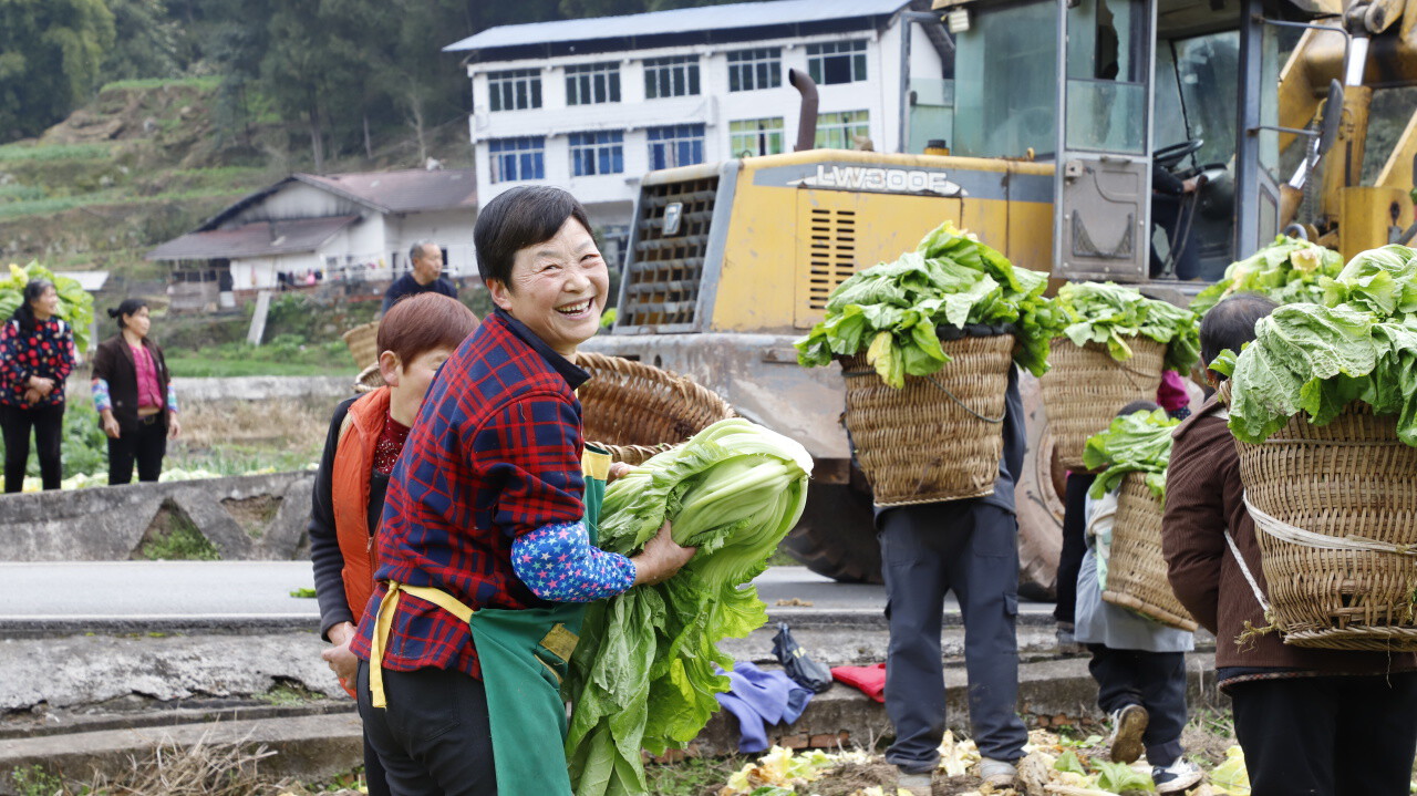 据悉,达州通川梓桐镇以宝泉村为示范,联动两河村形成200亩左右青菜种植规模。此次采收,青菜亩产稳定近4000斤,总产量约80万斤,总收益近20万元,累计吸纳1000人次村民到基地务工,实现群众务工、集体增收、企业盈利三方共赢,让绿油油的青菜真正变成了带动村民增收致富的“黄金叶”。