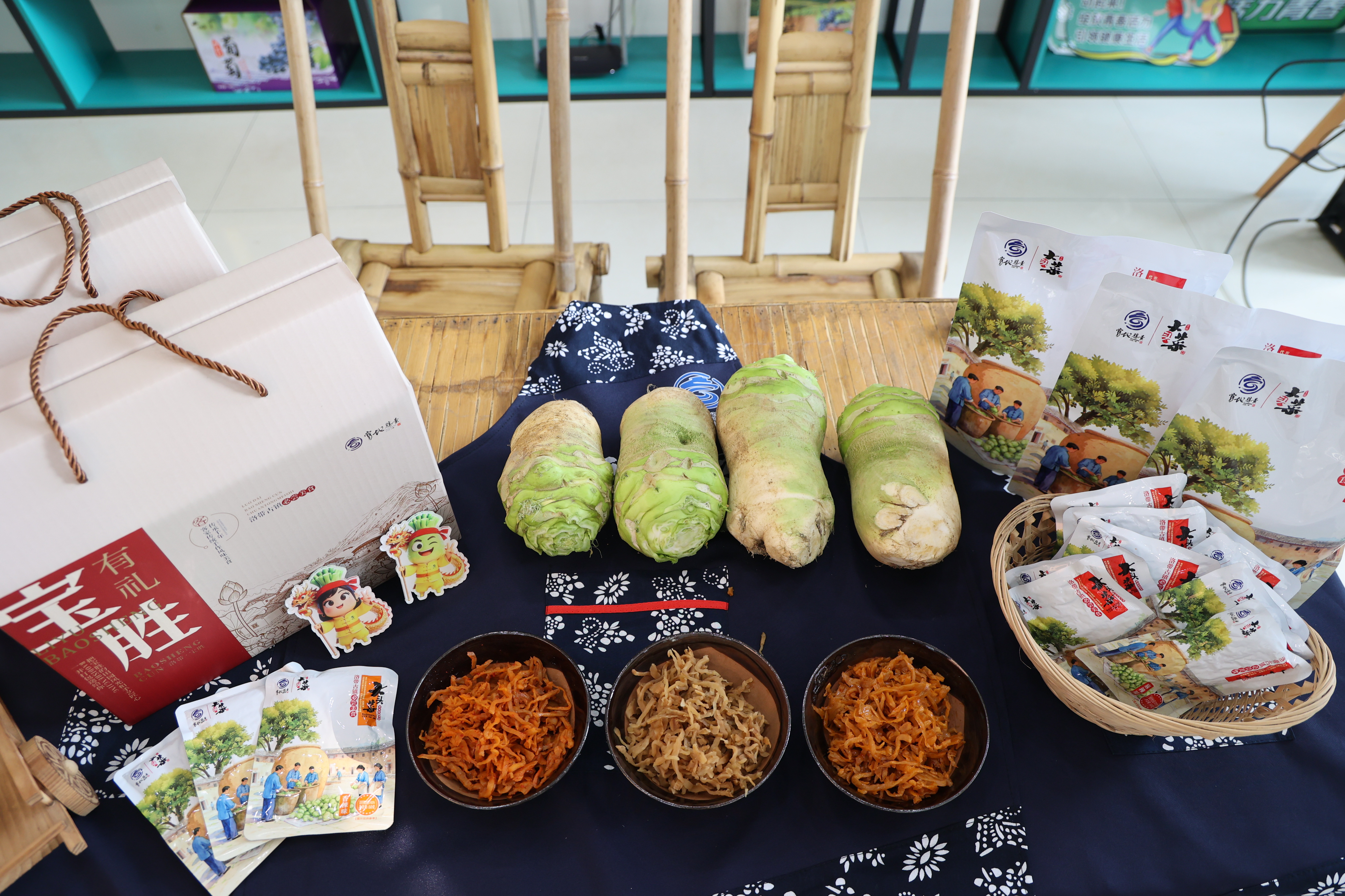 第二步是“自立门户”。村集体申请注册了“宝地胜景”商标,寓意宝胜村的优美风光与优质物产。从此,宝胜村的大头菜不再是没有名字的“原料”,而是有了自己专属的品牌身份。在今年元旦龙泉驿区举办的首届“村糖会”上,首批印有“宝地胜景”、充满客家文化元素包装的大头菜伴手礼一亮相,便销售一空。“卖得特别好,这些菜全部来自段勇清家。”陈礼惠高兴地说。