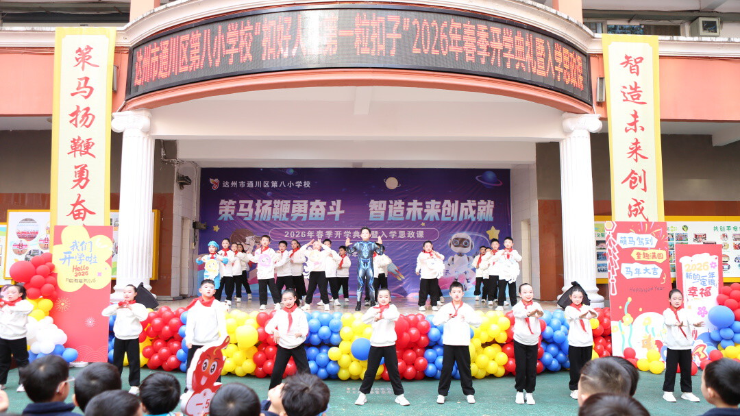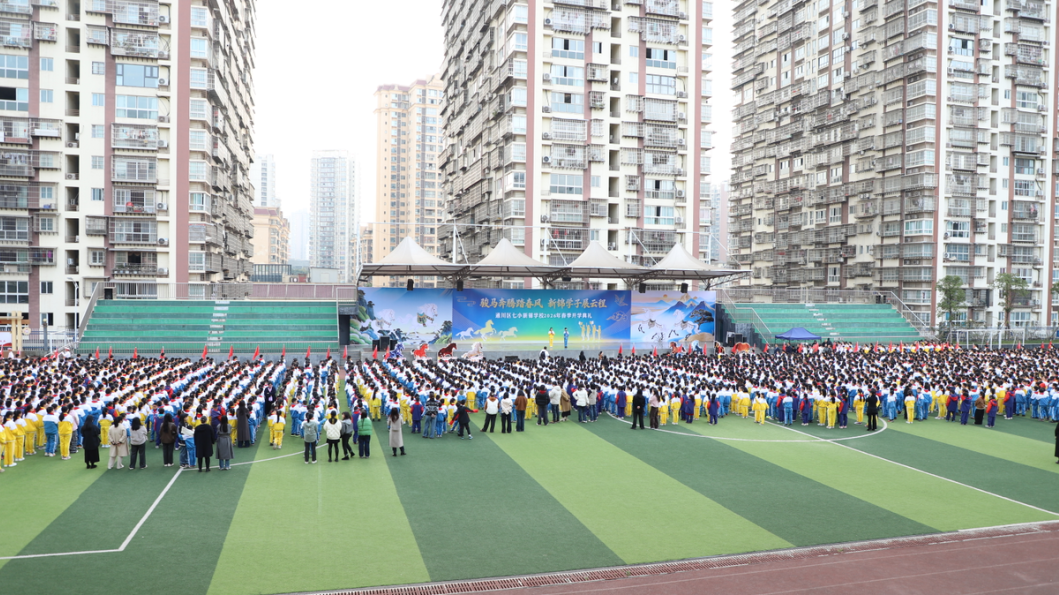 3月5日,通川区七小新锦学校举行主题为“骏马奔腾踏春风 新锦学子展云程”的2026年春季开学典礼,以昂扬之姿迎接新学期的到来。