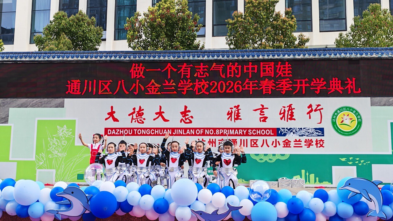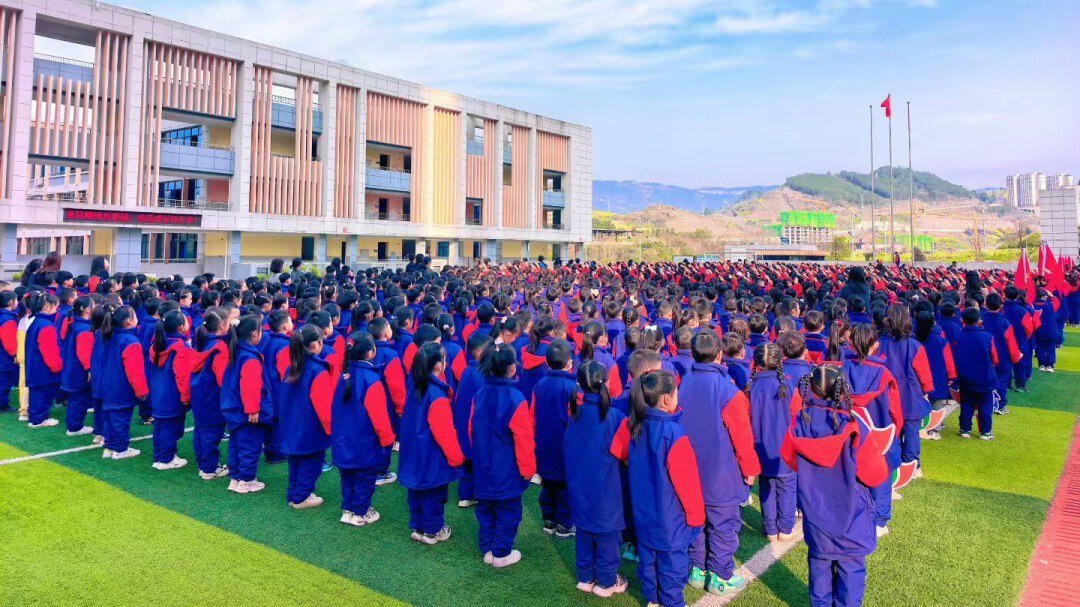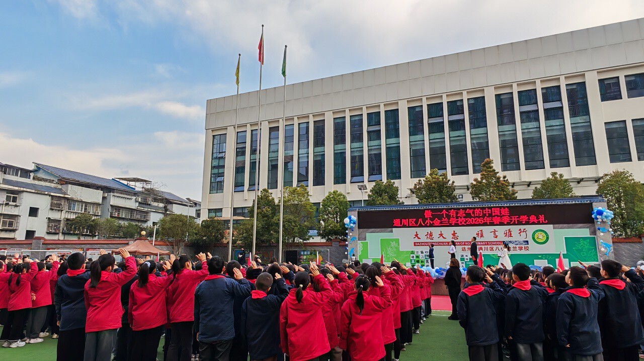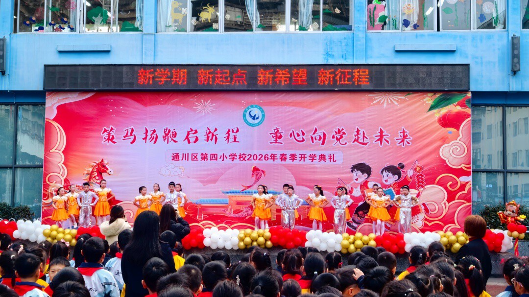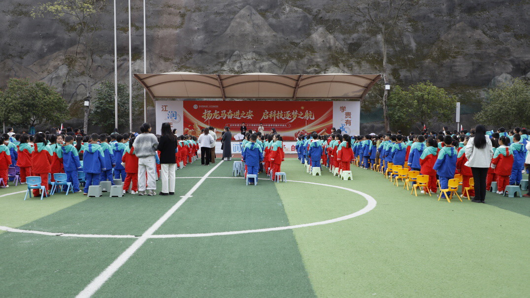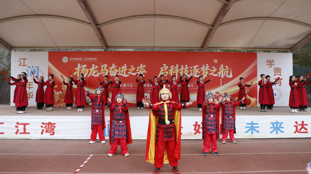 通川区一小江湾城学校举行了以“扬龙马奋进之姿,启科技逐梦之航”为主题的2026年春季开学典礼,全体师生齐聚操场,共同开启新学期的崭新征程,也为新一年的校园生活注入奋进力量。