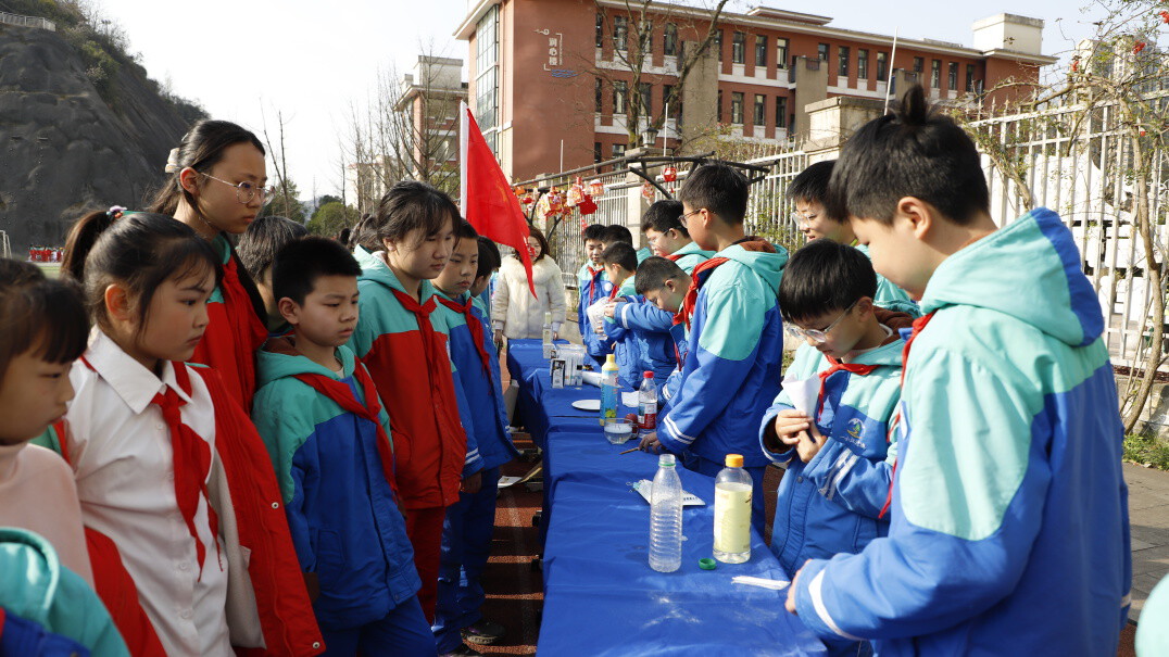 典礼结束后,同学们有序走进各年级精心布置的体验点位,沉浸式感受实践与科技交融的独特魅力。现场不仅展出了插花、手工灯笼、福袋、科学农业模型等琳琅满目、创意十足的劳动实践作品,更设置了现场趣味科学实验演示环节,让学生直观感受科技魅力的同时,进一步涵养科学素养、激发创新潜能。