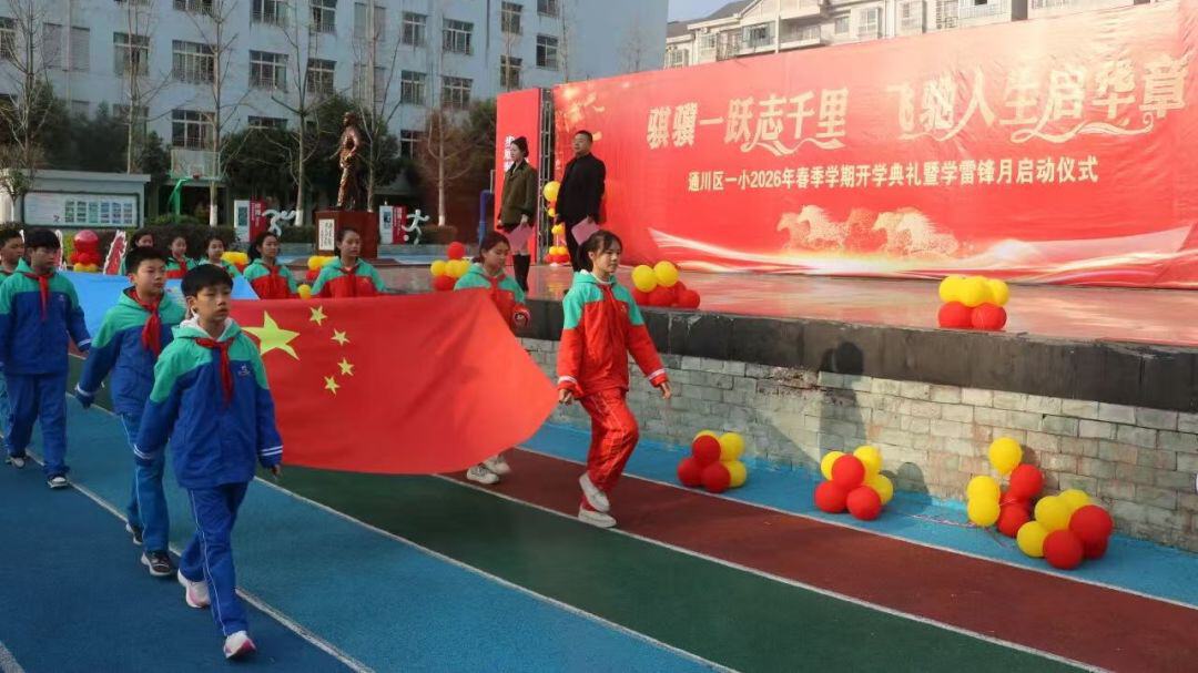 通川区七小永兴小学校举行以“策马扬鞭启新程 雷锋精神伴我行”为主题的2026年春季开学典礼,将新学期启幕与弘扬雷锋精神深度融合,为全体师生开启了一段充满温暖与力量的新征程。